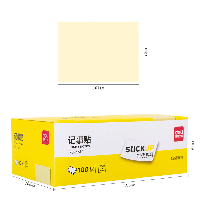 得力(deli)黄色便利贴粘性便签纸 76*101mm大号备忘留言纸/记事贴 办公用品 7734