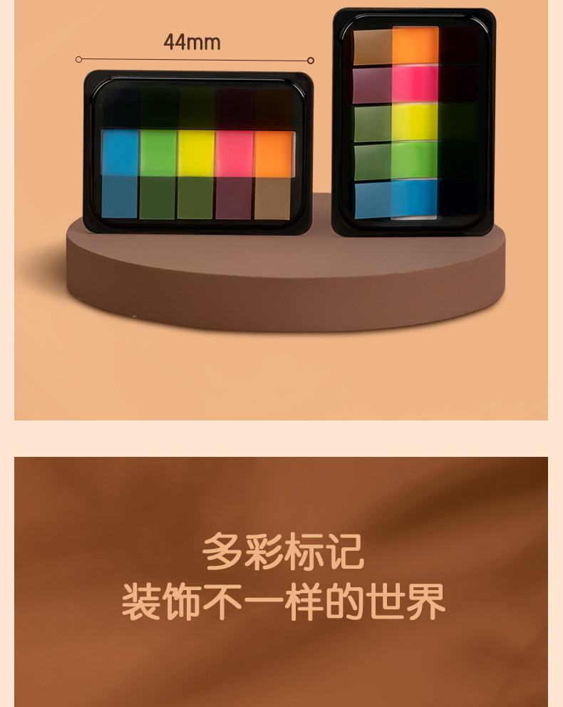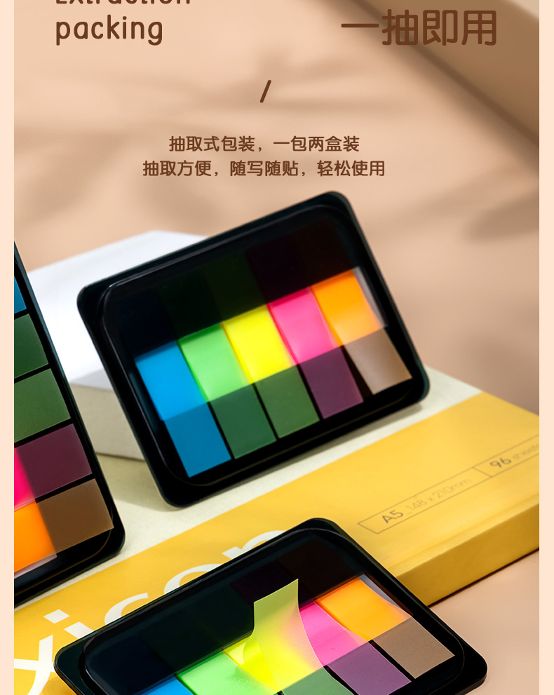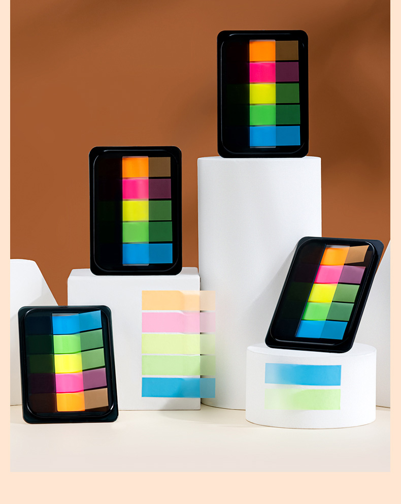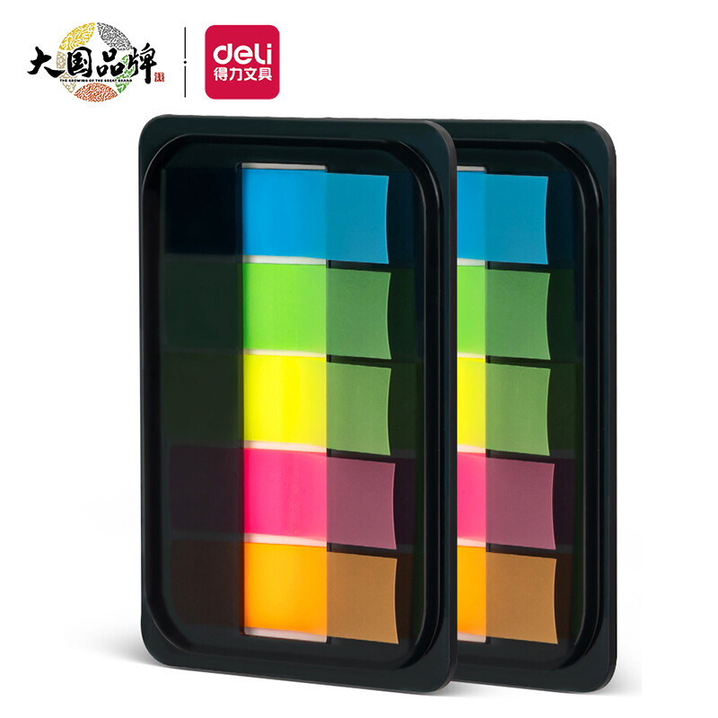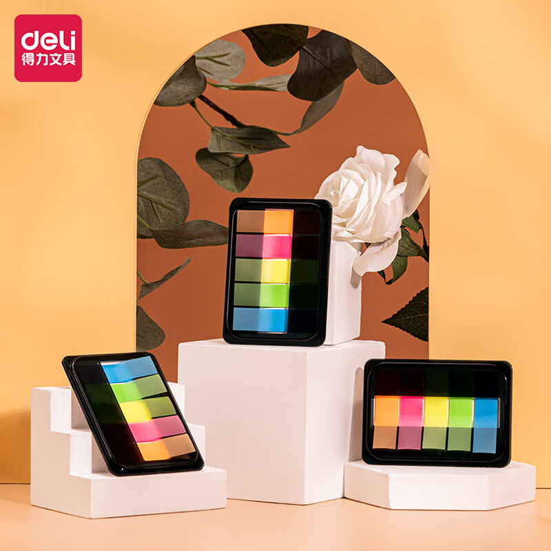 得力200张5色荧光膜指示标签贴 44*12mm抽取式便利贴记事贴9069