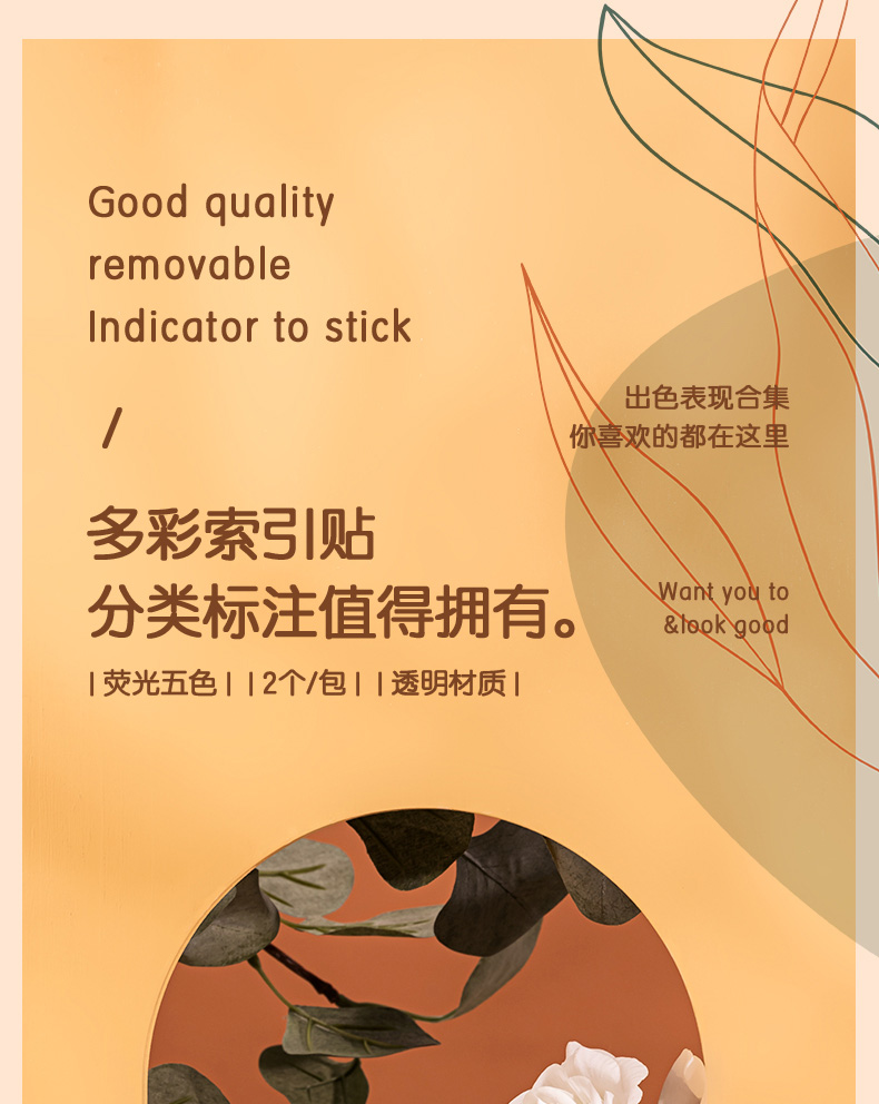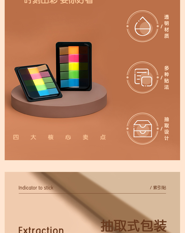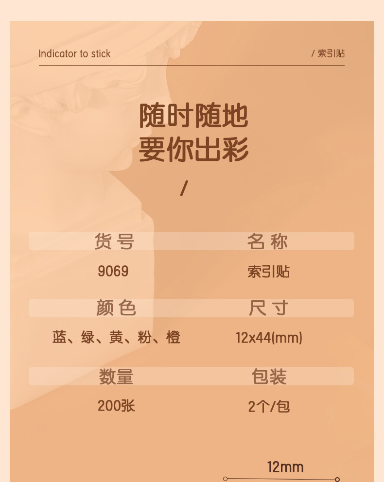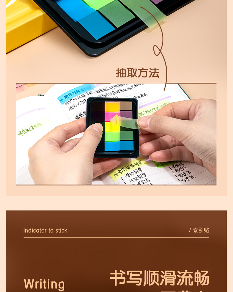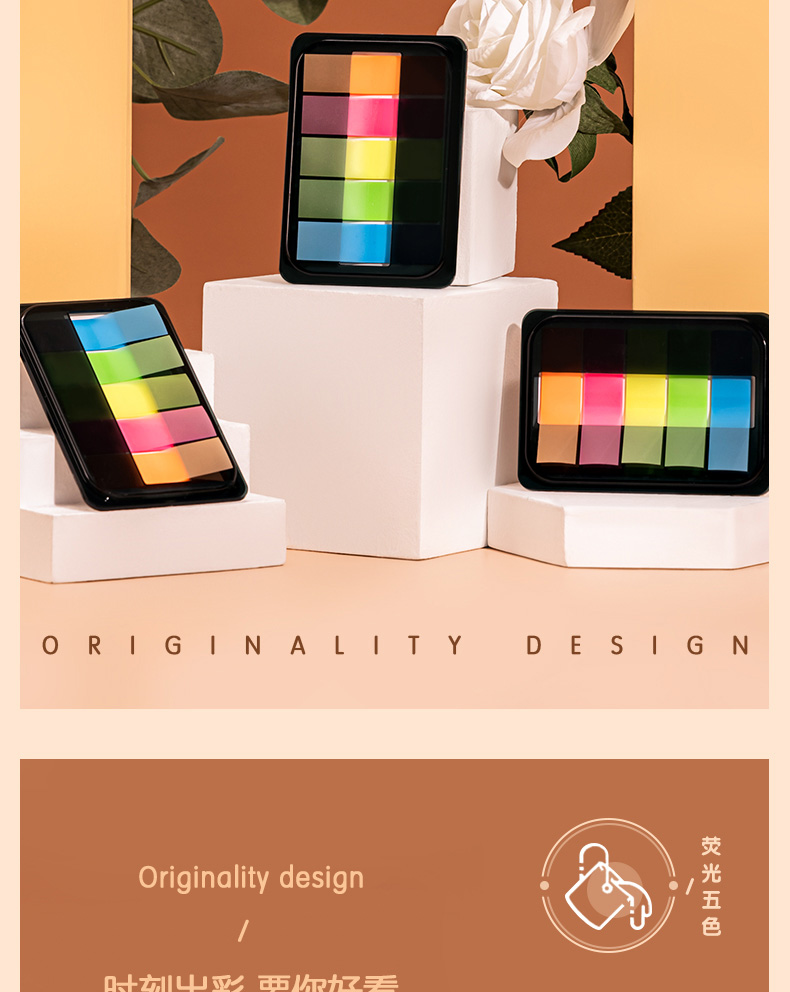 得力200张5色荧光膜指示标签贴 44*12mm抽取式便利贴记事贴9069