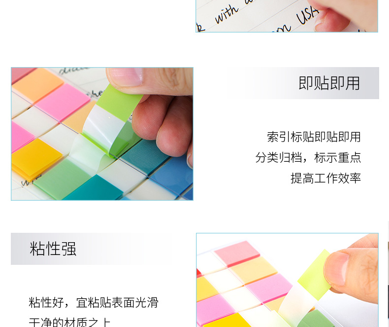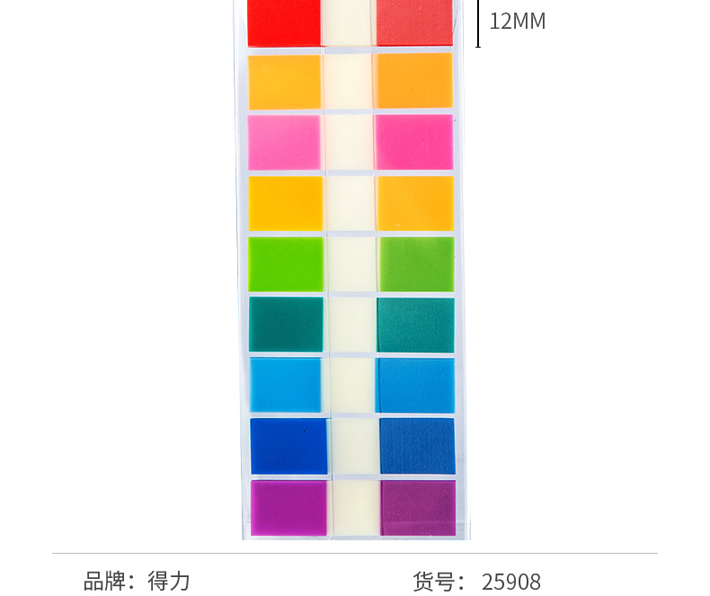 得力(deli)180张12*44mm抽取式彩色指示标贴 荧光膜便利贴便签条记事贴 25908