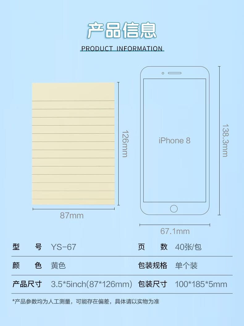 晨光(M&G)横线便利贴 报事贴 便签本 87*126mm/单本装YS-67