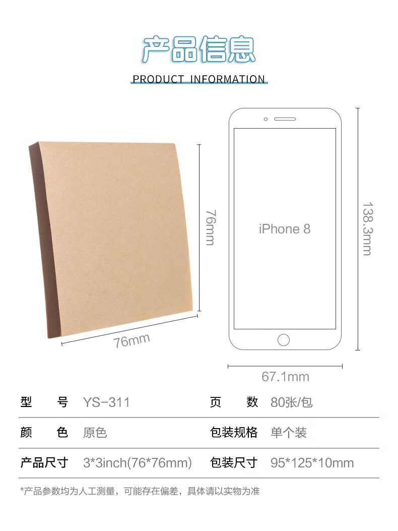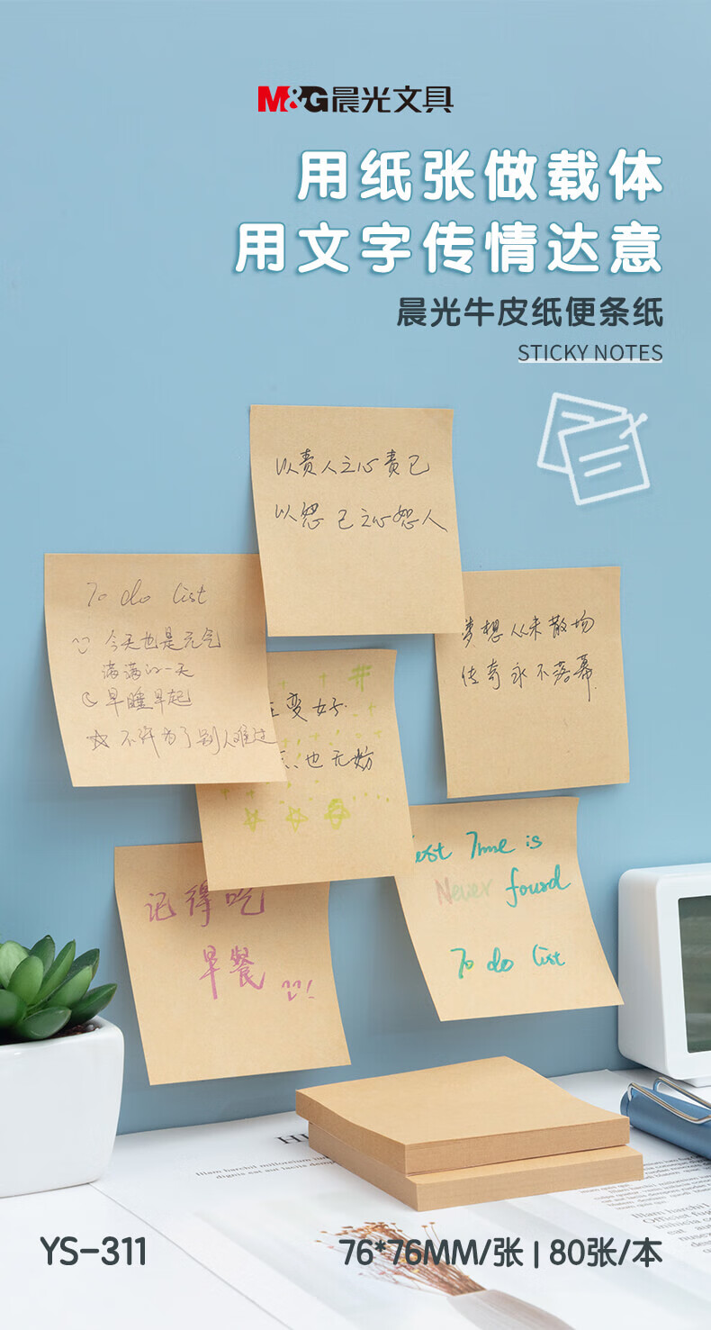 晨光(M&G)文具80张牛皮纸便利贴 粘性便签纸计划本留言贴 76*76mm记事贴便签本子 单本装YS-311