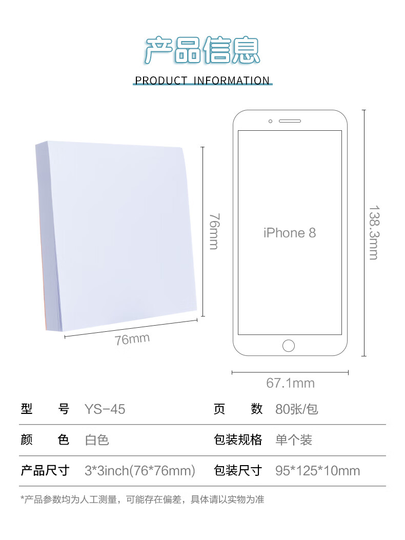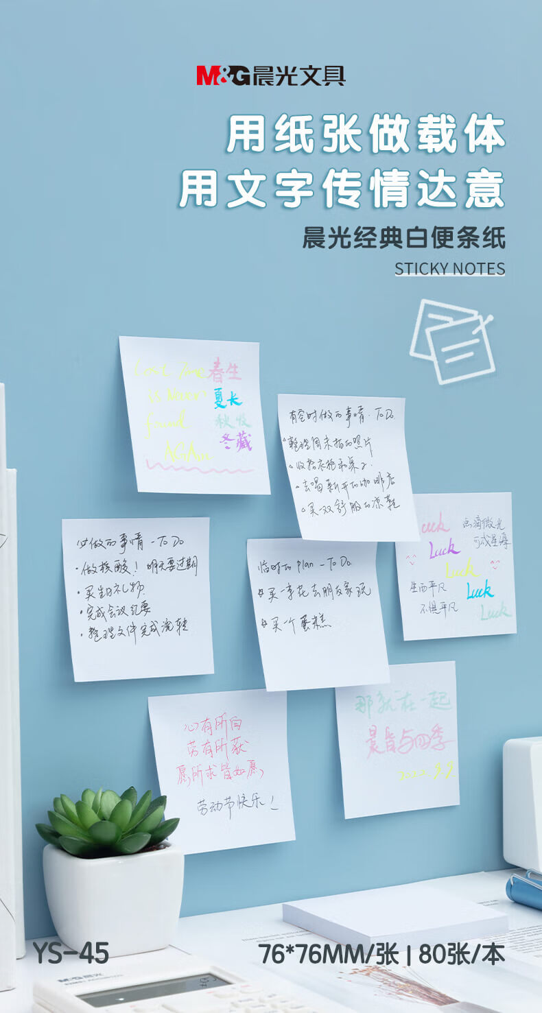 晨光(M&G)文具白色80张便利贴 粘性标签贴留言贴 76*76mm记事贴优事贴便签本子 单本装YS-45