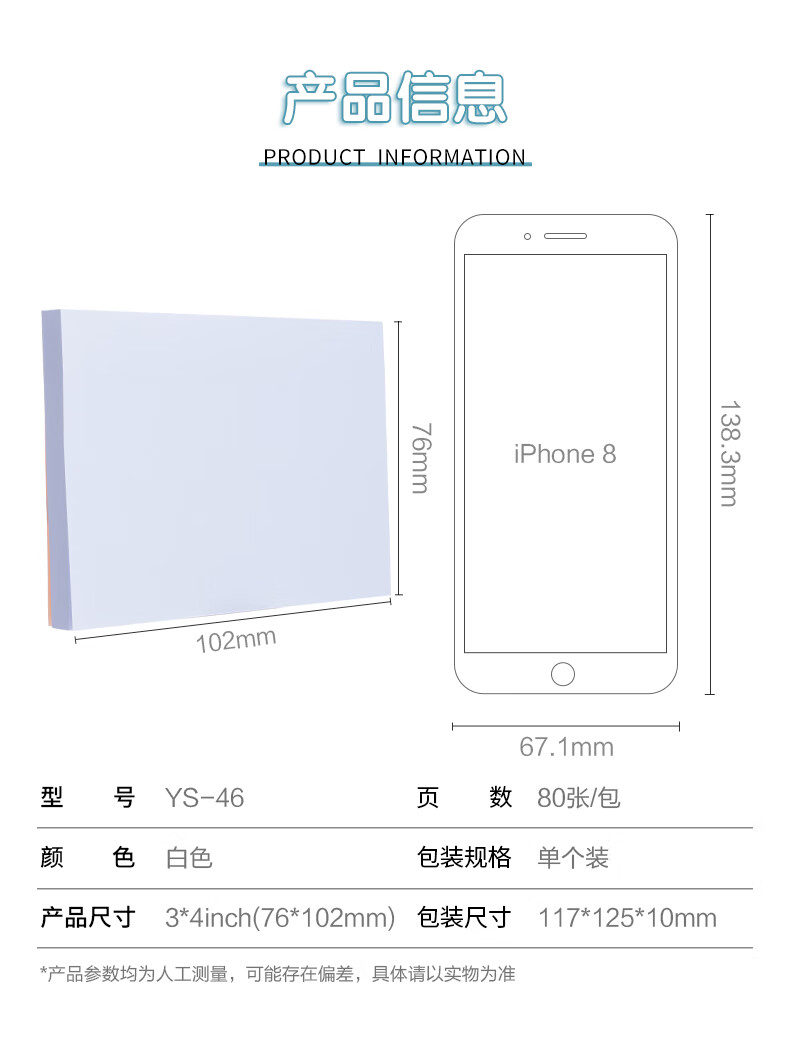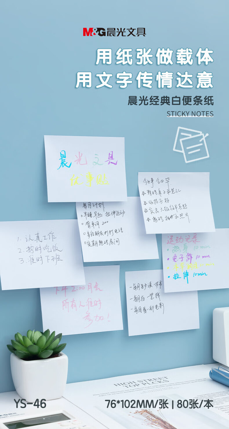 晨光(M&G)文具白色80张便利贴 粘性便签纸留言贴 76*102mm记事贴优事贴便签本子 单本装YS-46
