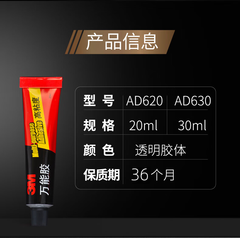 3M 万能胶 胶水 适用于模型/皮革/织物/木材/陶瓷/橡胶 高粘度 AD630 30ml/支