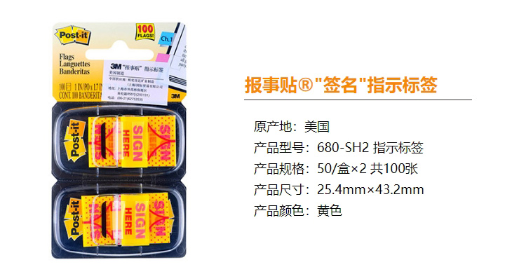 3M 便条纸/便利贴/ 箭头 “签名”指示标签 680-SH2 100片装