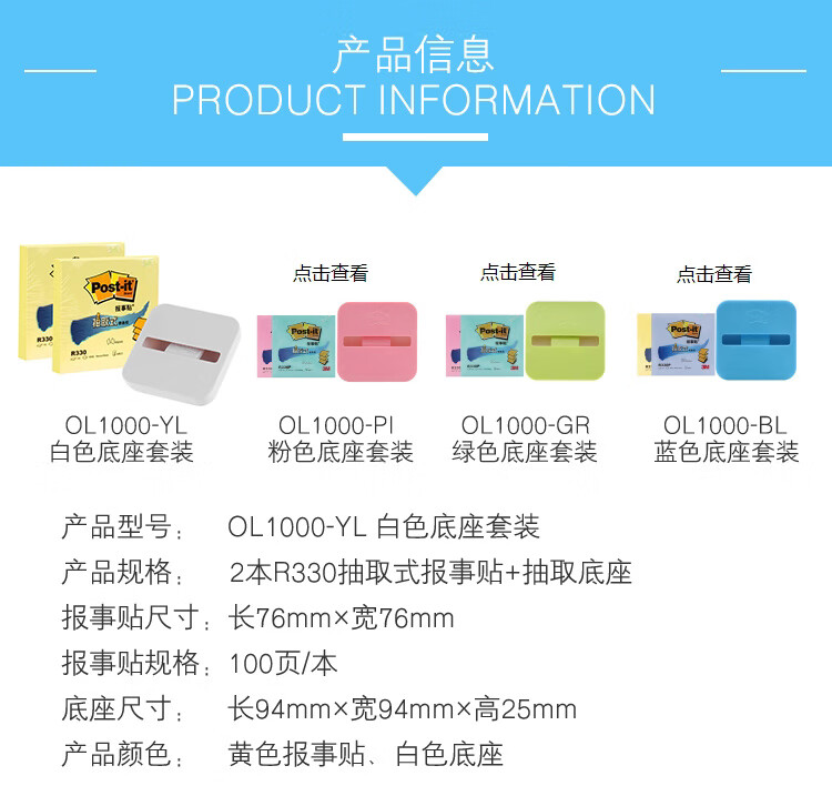 3M 便利贴 报事贴/记事贴/便签本抽取式套装OL1000-YL 2本装(含白色底座)
