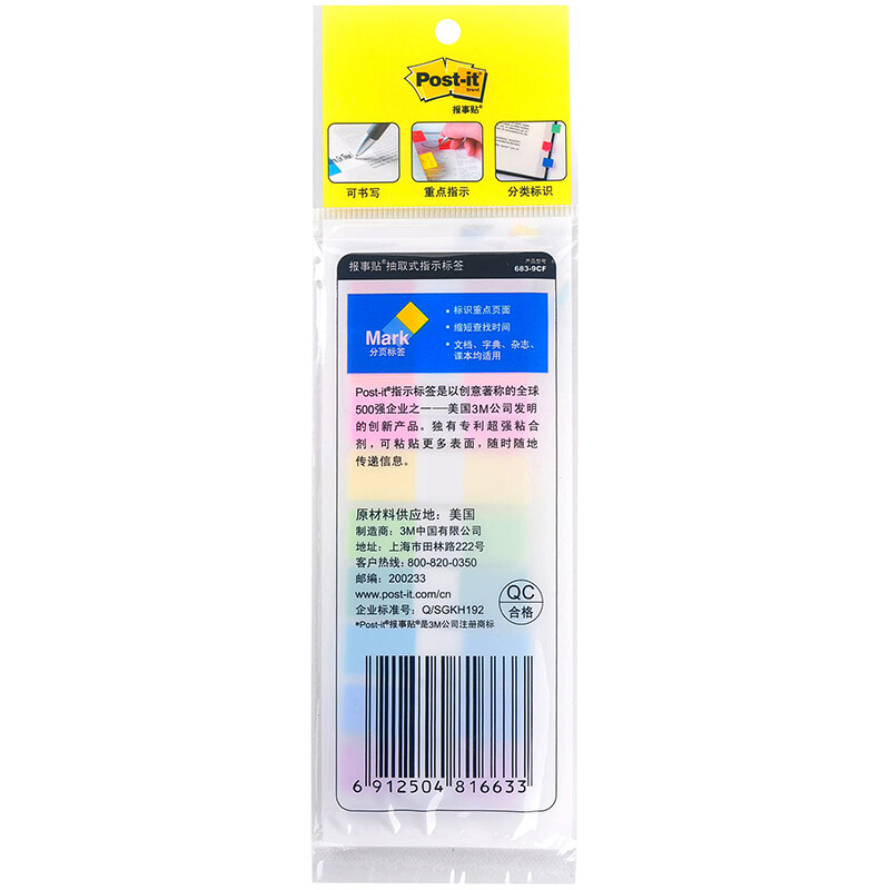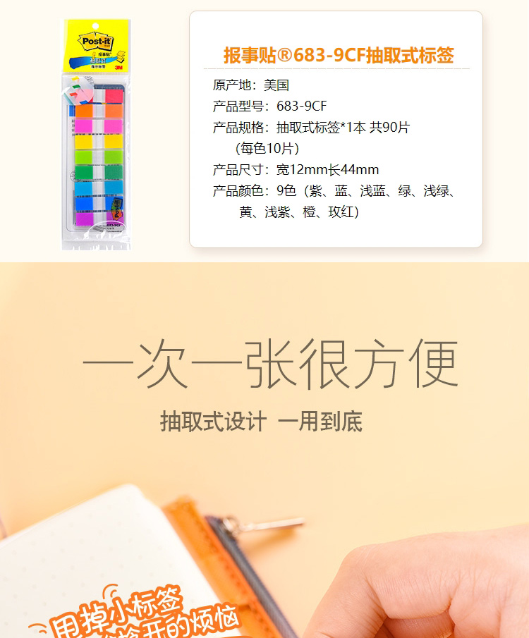 3M 便签 便利贴/报事贴/透明指示标签683-9CF(9色装)