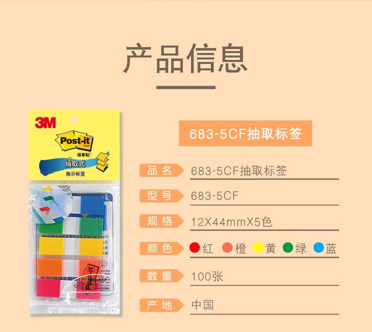 3M 报事贴/便利贴/透明指示标签683-5CF(5色装)