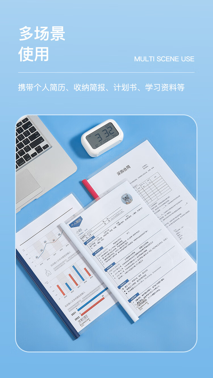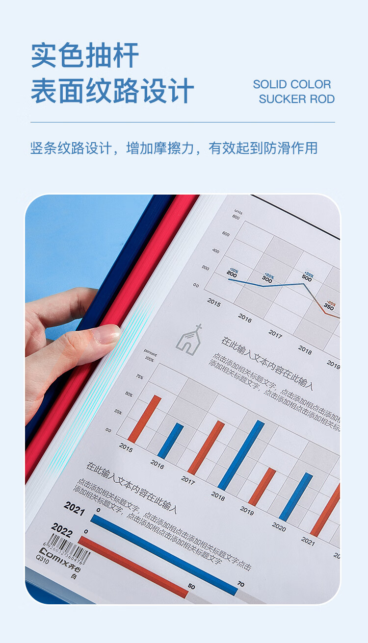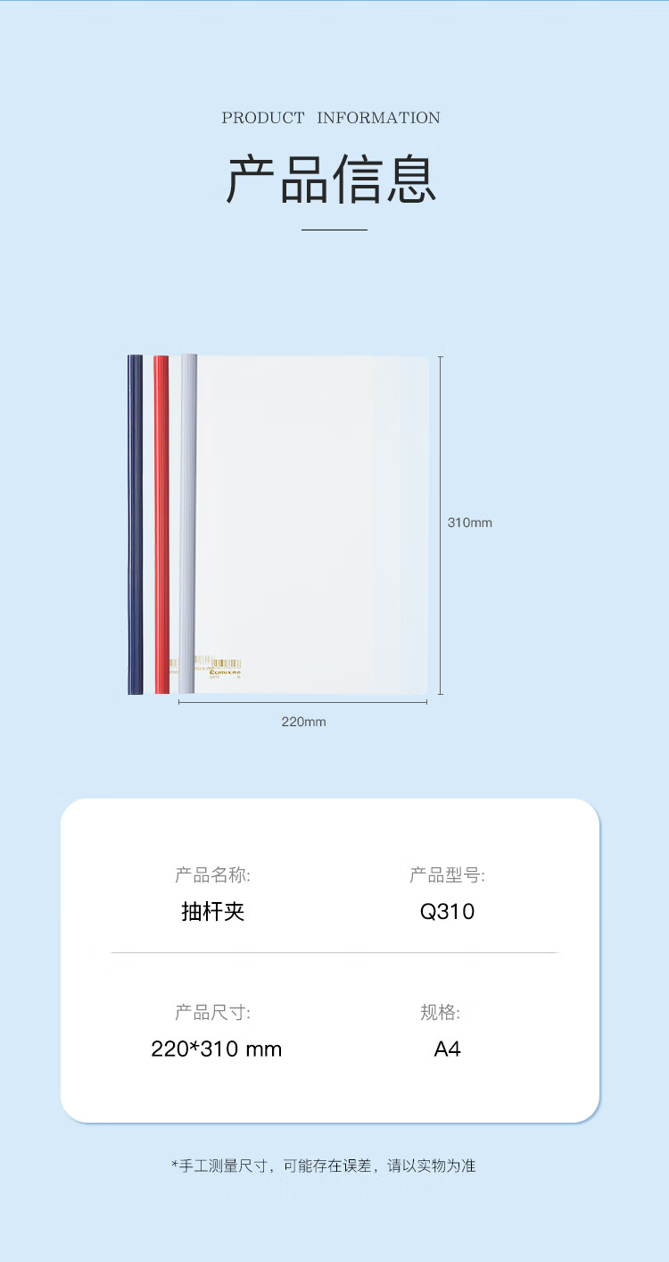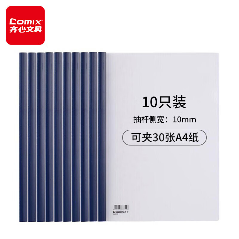 齐心(Comix) 10个装 强力加厚型抽杆夹/文件夹/报告夹/拉杆夹A4 蓝色 办公文具Q310