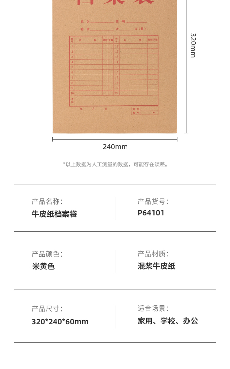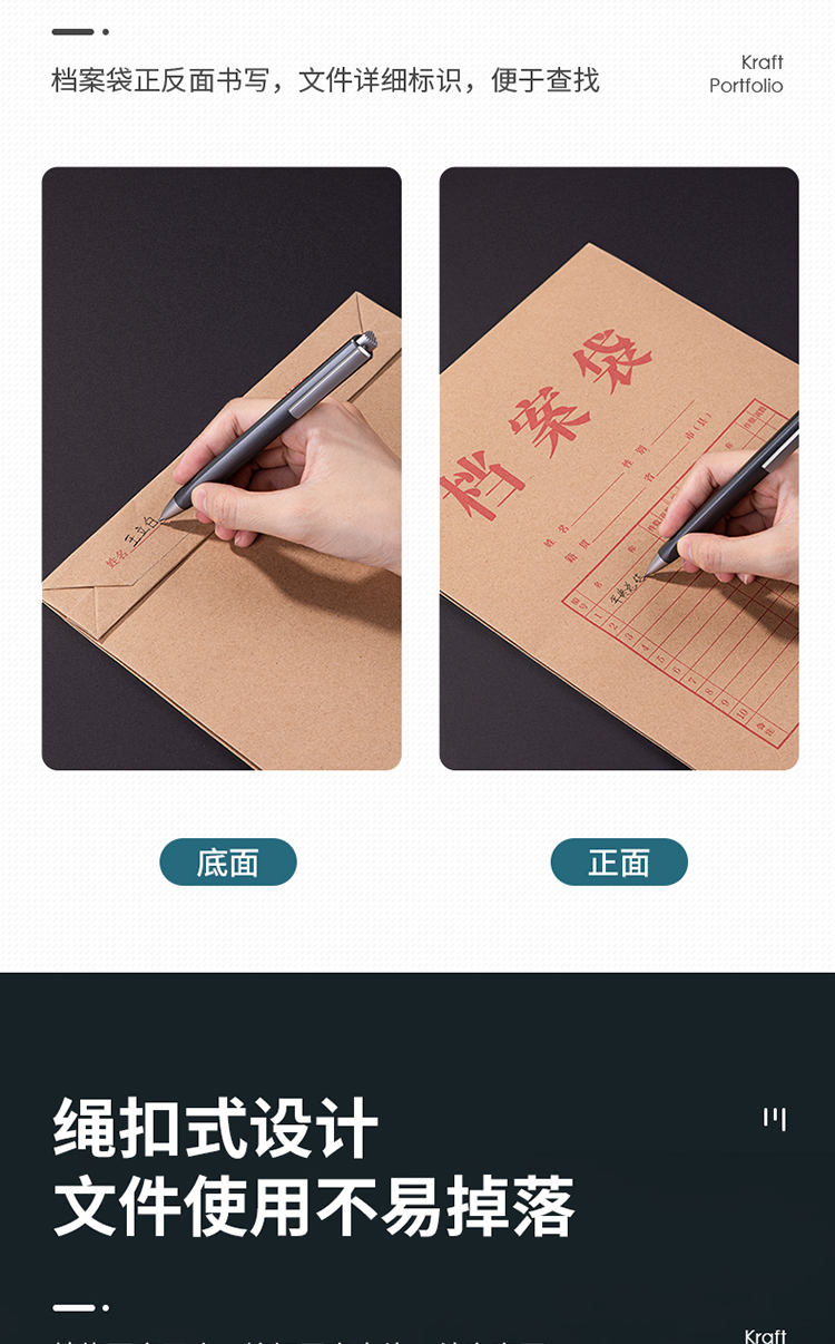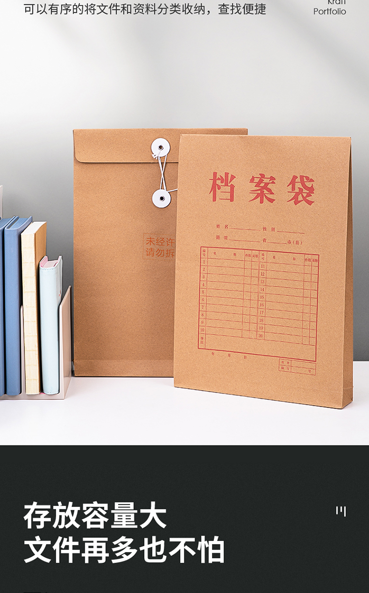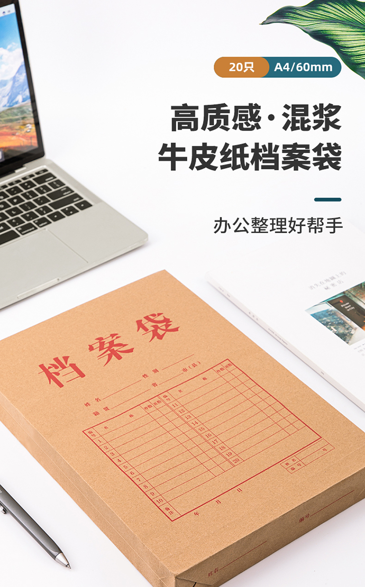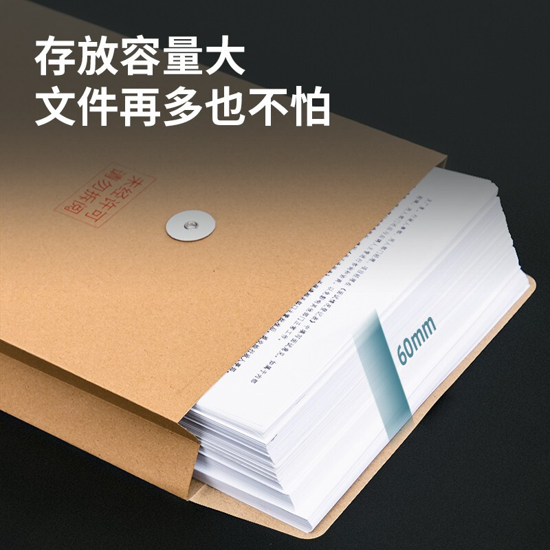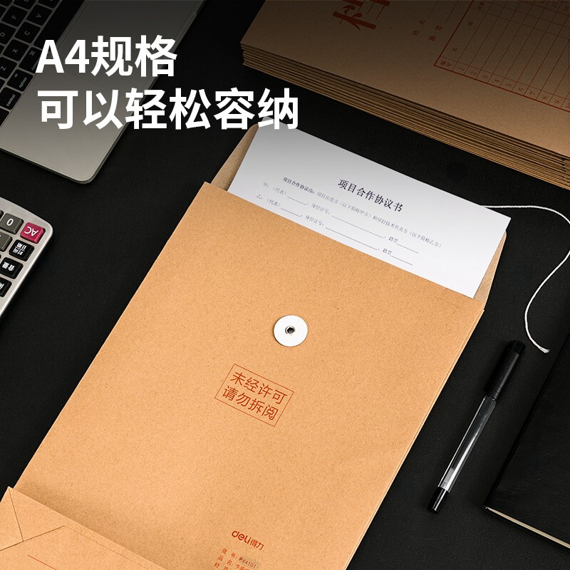 得力(deli)20只A4混浆200g牛皮纸档案袋票据收纳侧宽6cm标书合同文件资料袋 64101