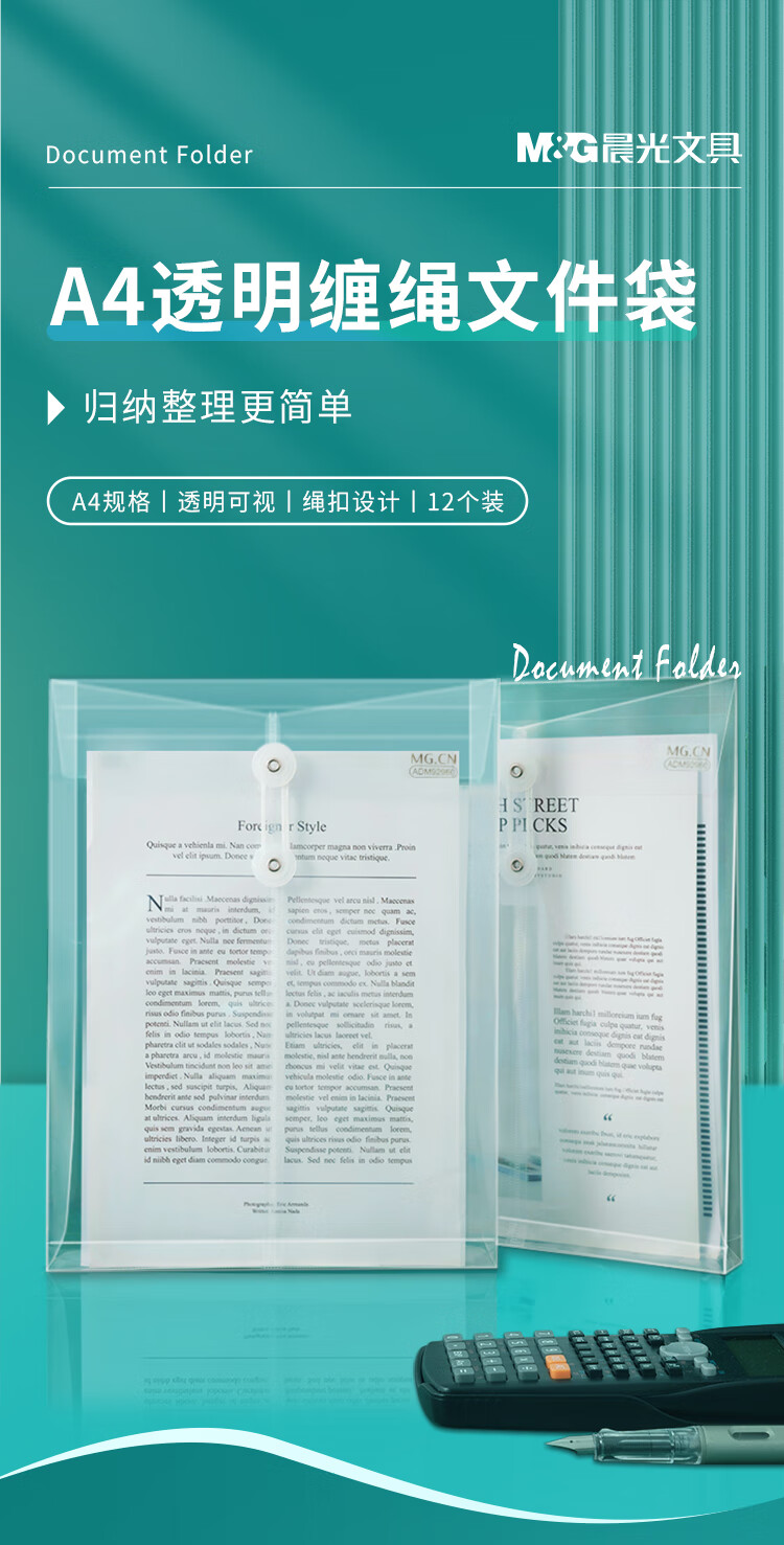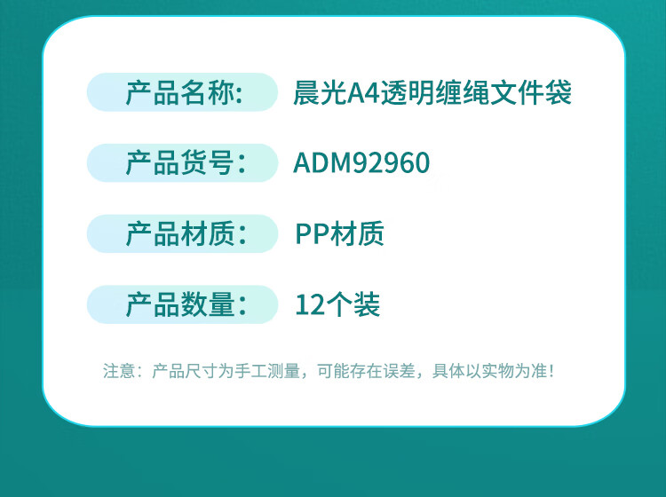 晨光(M&G)文具12个装A4/2cm透明缠绳文件袋 绑带式档案袋 票据收纳资料袋ADM92960