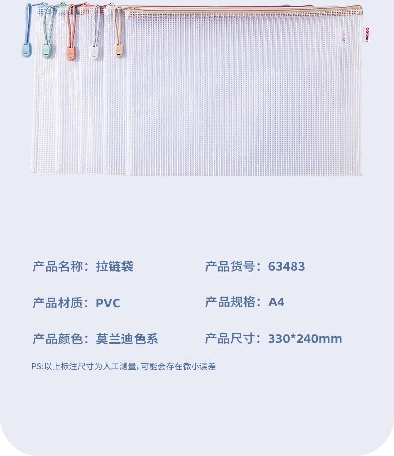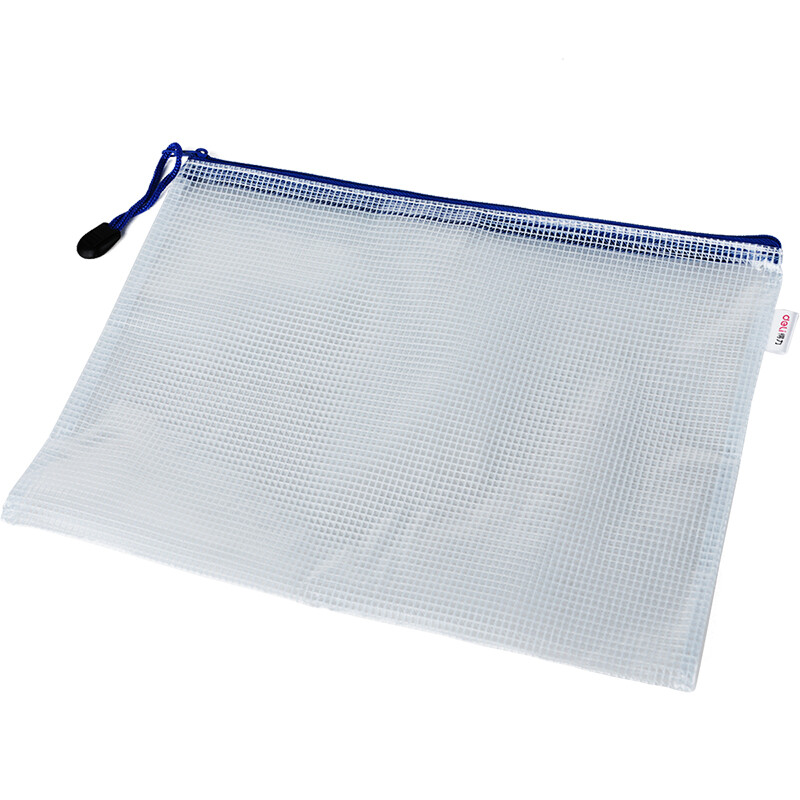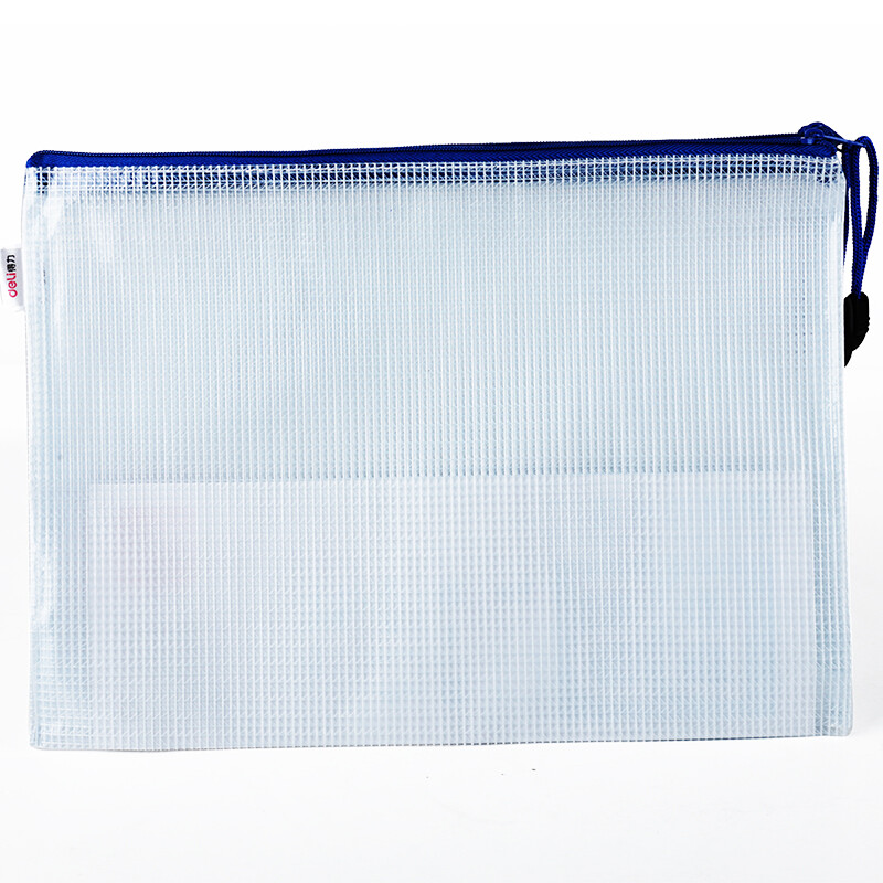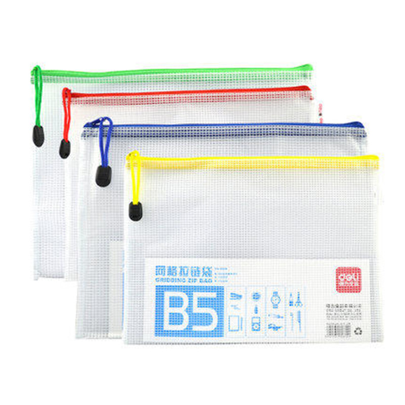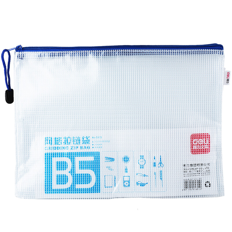 得力(deli)透明文件袋 透明网格学科分类袋 学生试卷科目分类文具袋 5655 B5 网格拉链袋5个装