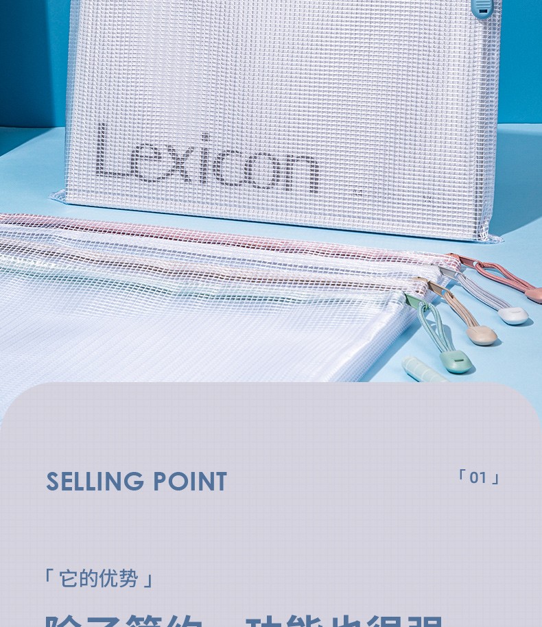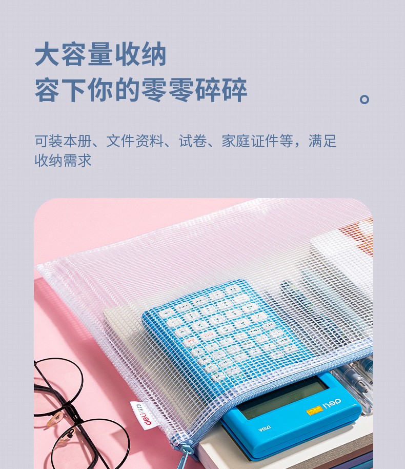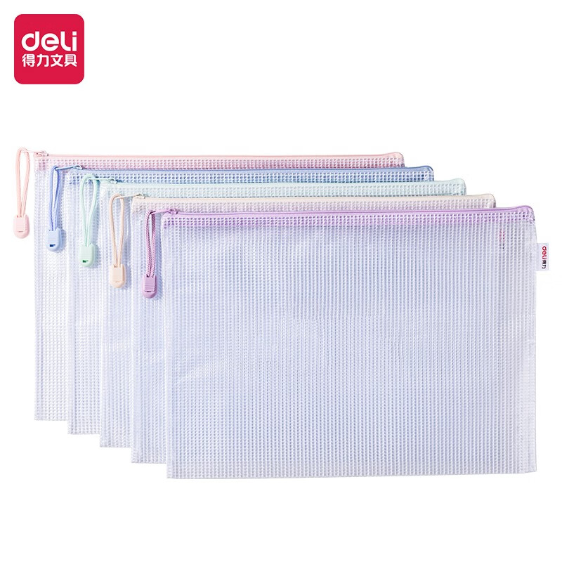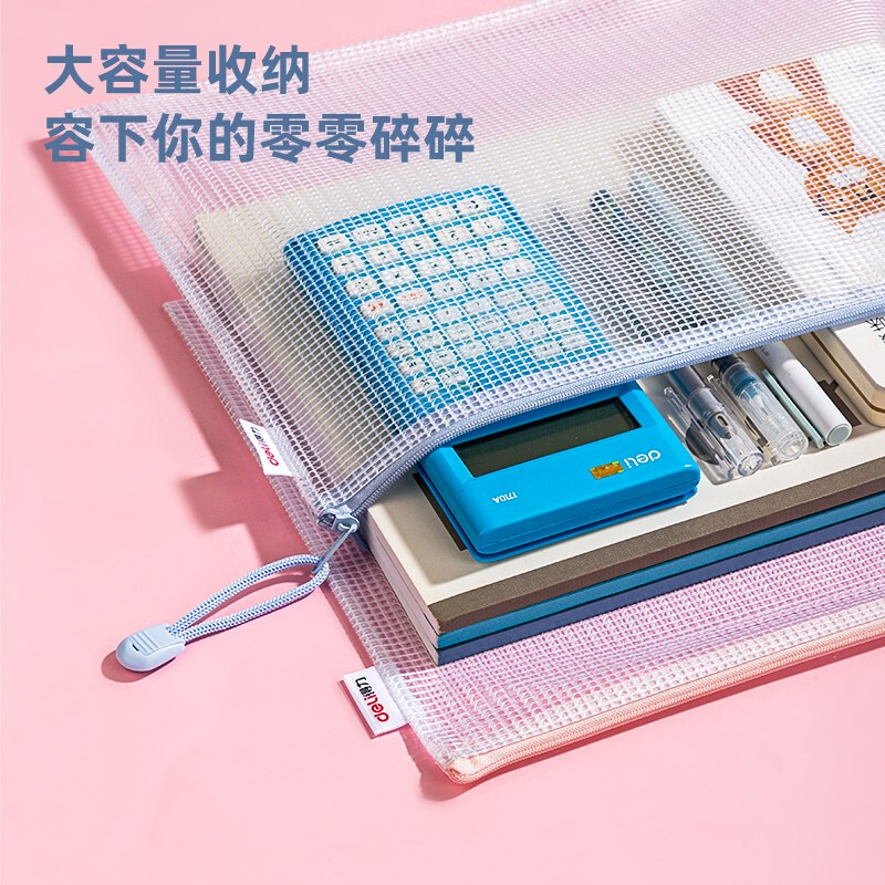 得力(deli)透明文件袋 透明网格学科分类袋 学生试卷科目分类文具袋 马卡龙A4无袋拉链袋5个