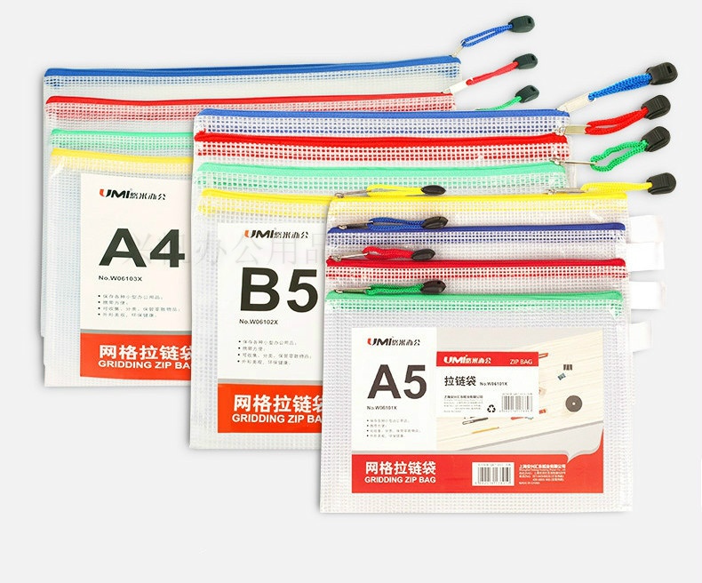 悠米(UMI)PVC网格拉链袋,B5 W06102X 颜色随机