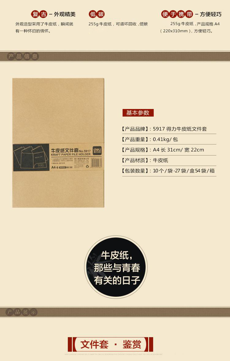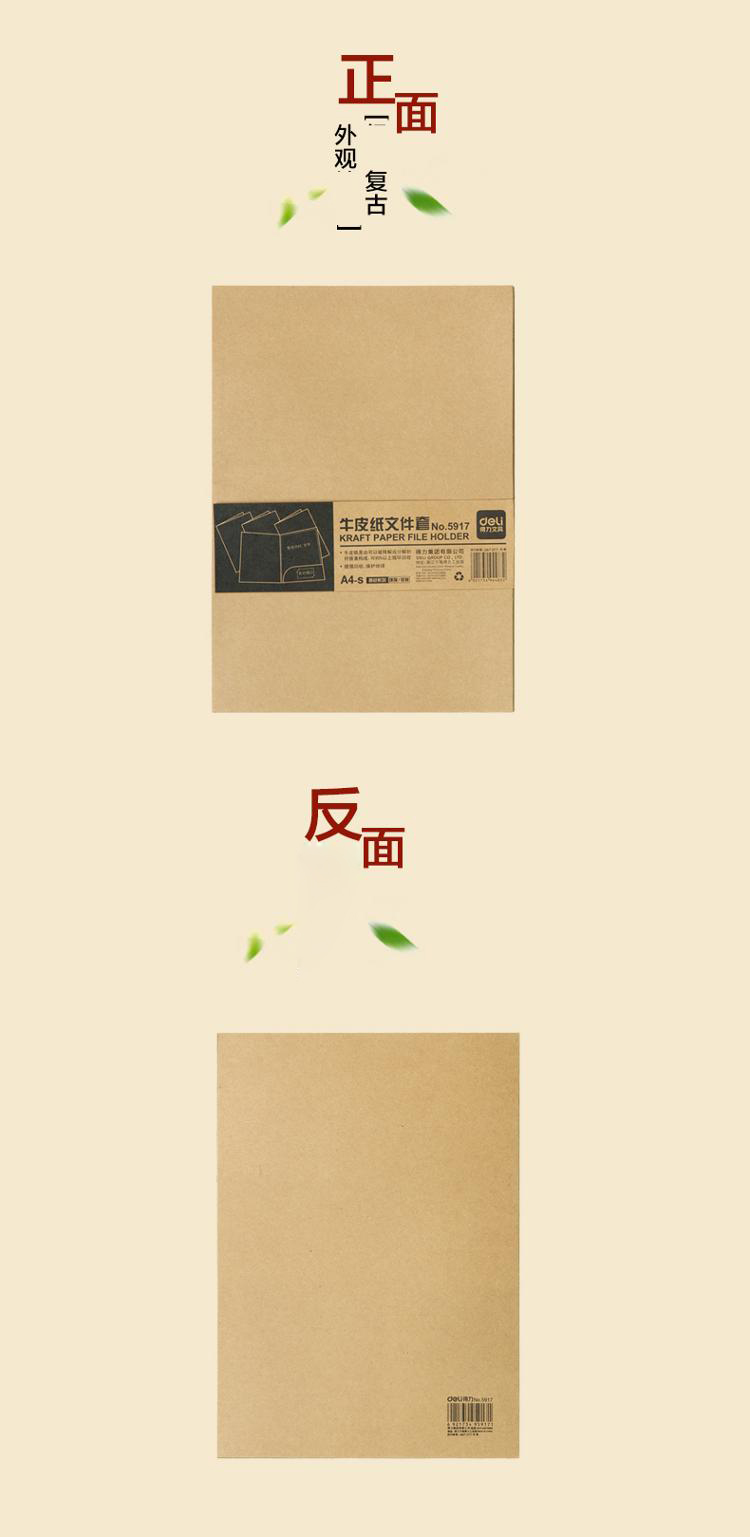 得力(deli)10只A4牛皮纸文件套 L型资料文件袋文件快递袋 耐用单页文件夹 5917