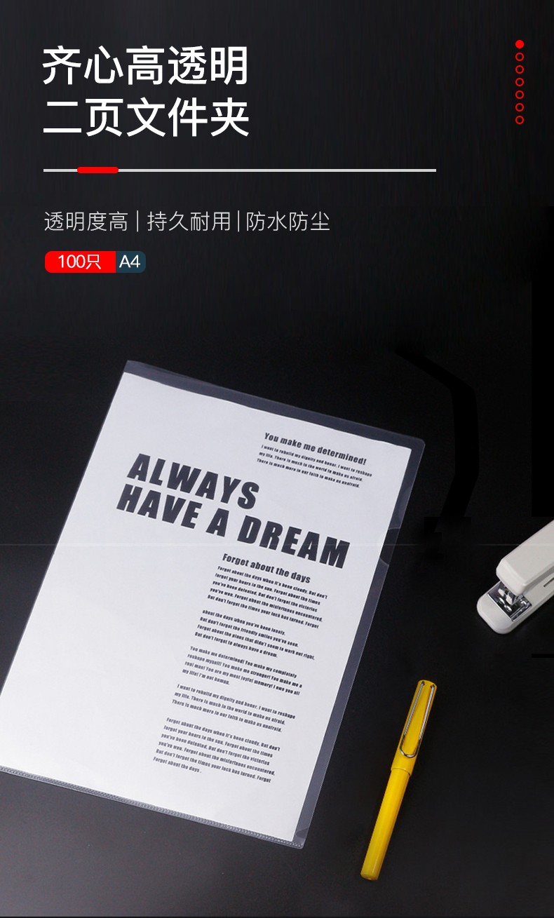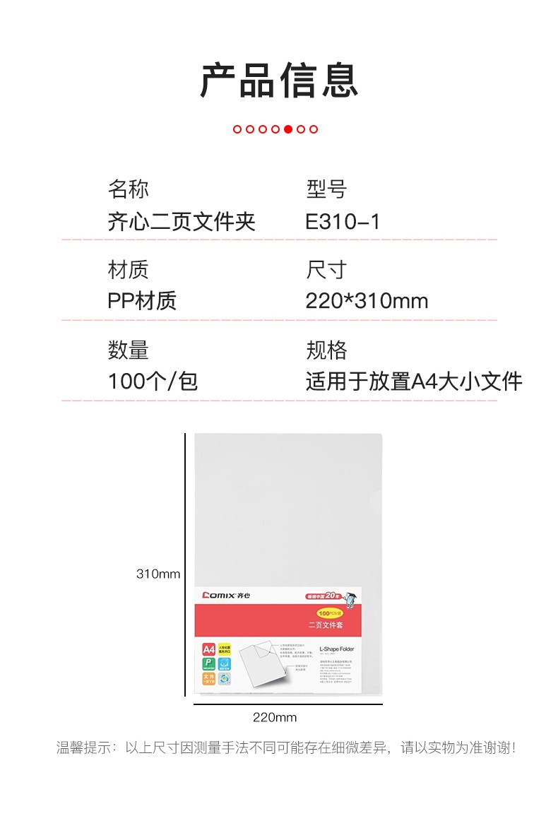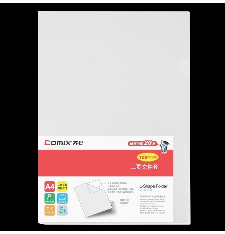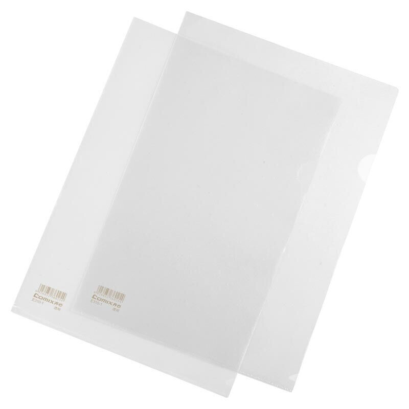 齐心(COMIX) 100只A4L型透明二页文件套防滑文件袋 单片夹加厚二页式资料单页夹 E310-1透明(100个装)