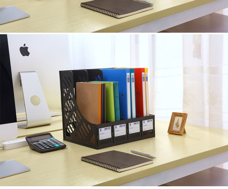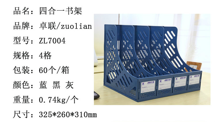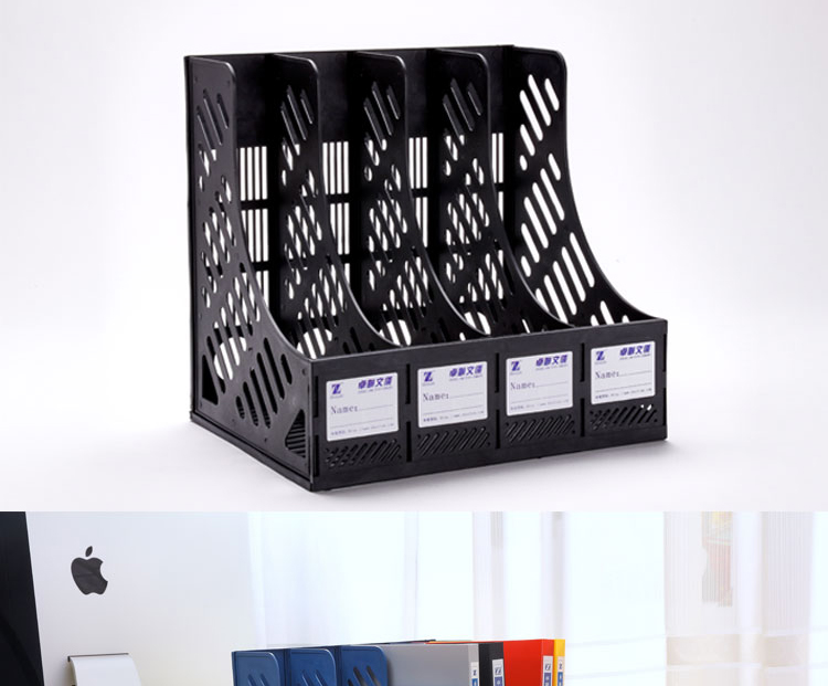卓联 ZL7004四栏文件架资料架四合一 书架塑料文件栏 收纳 文件框 黑色