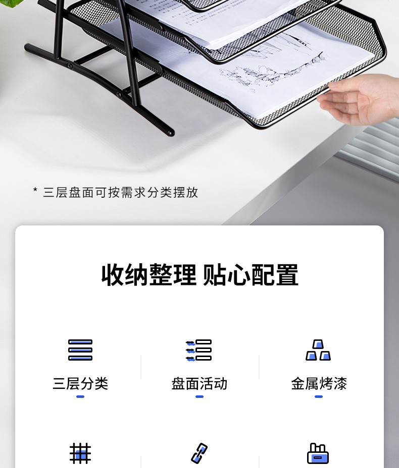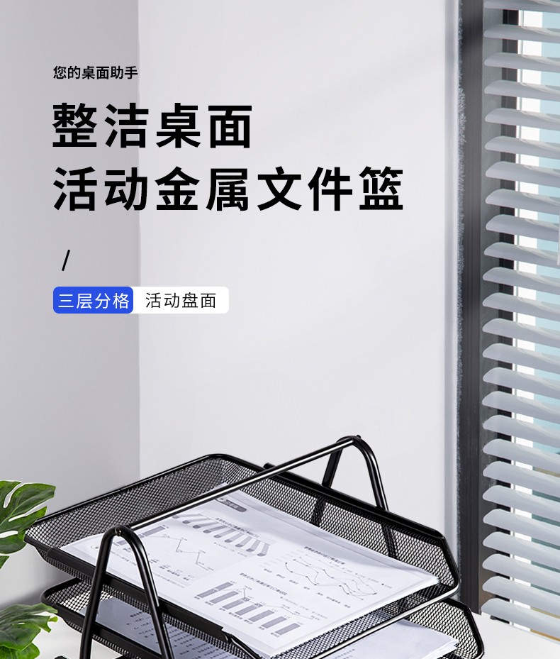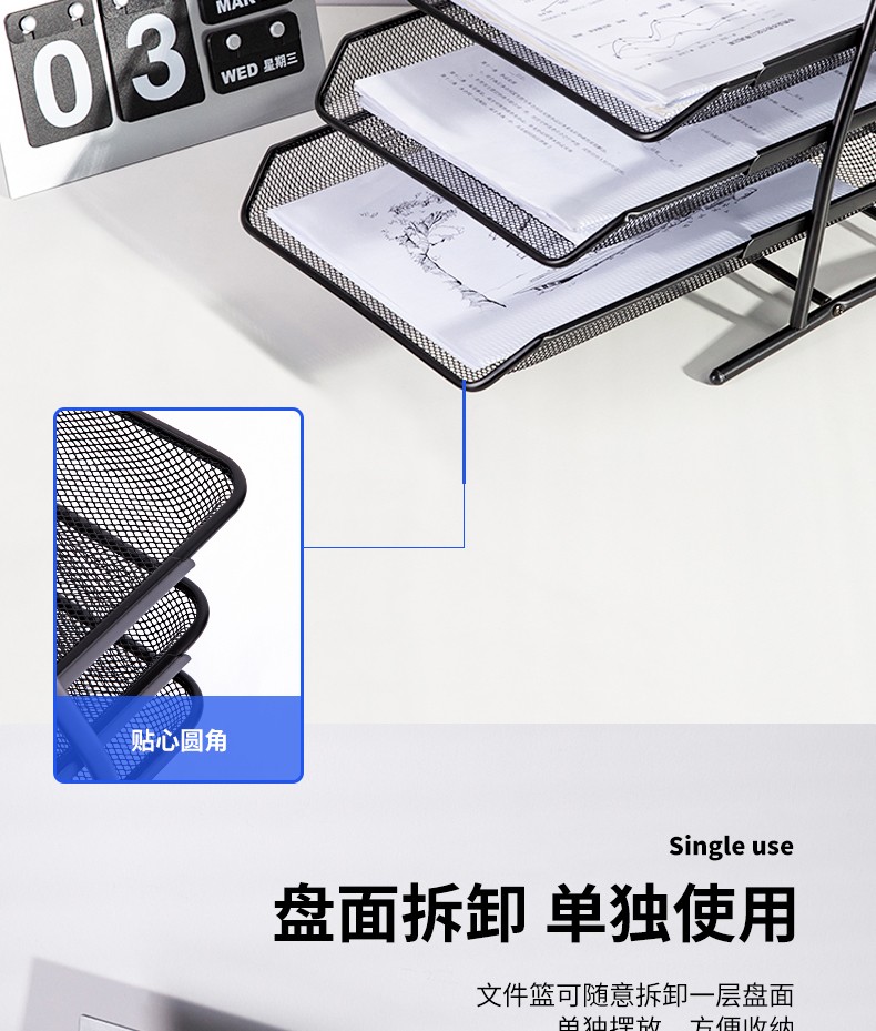 得力(deli) 三层镂空收纳文件座 自由拆卸组装三层文件盘/文件框/文件架 牢固耐用 9184 四层金属黑