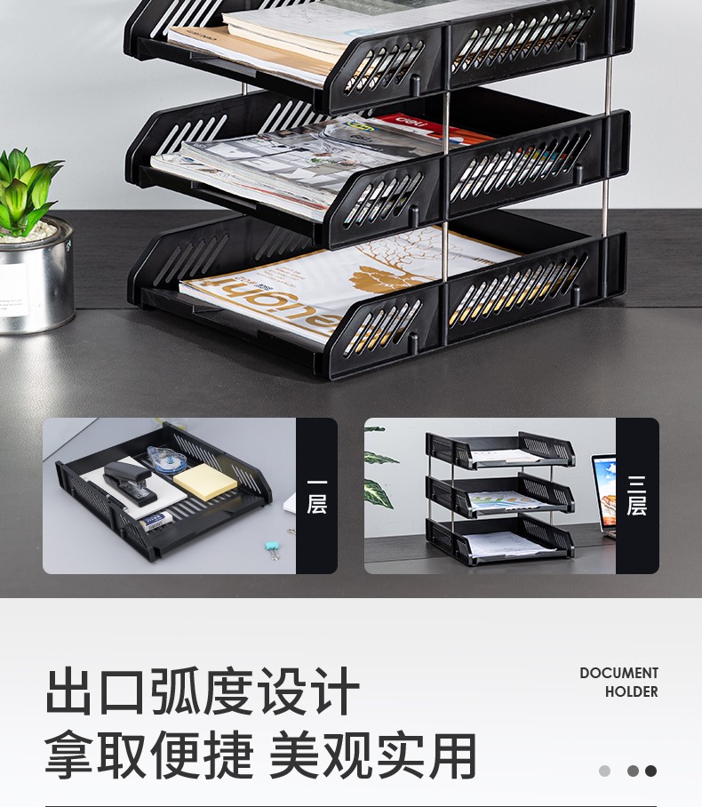 得力(deli) 三层镂空收纳文件座 自由拆卸组装三层文件盘/文件框/文件架 牢固耐用 9206 黑色