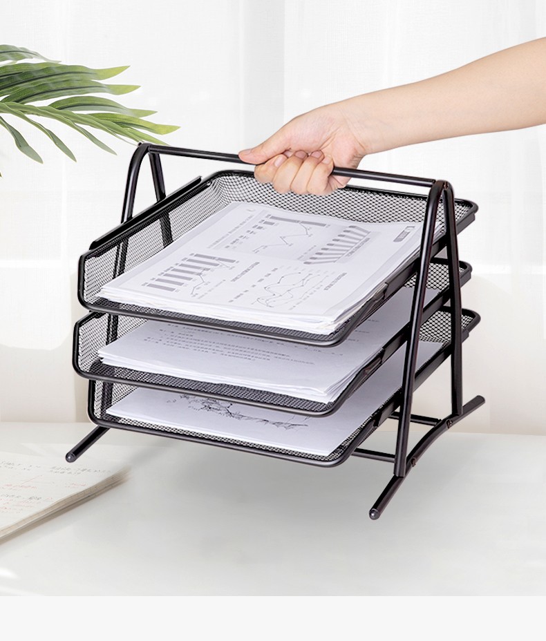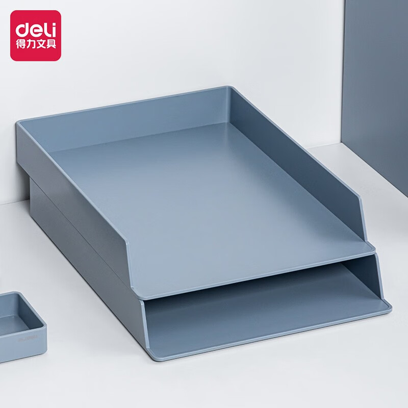 得力(deli) 三层镂空收纳文件座 自由拆卸组装三层文件盘/文件框/文件架 牢固耐用 NS021S 蓝色