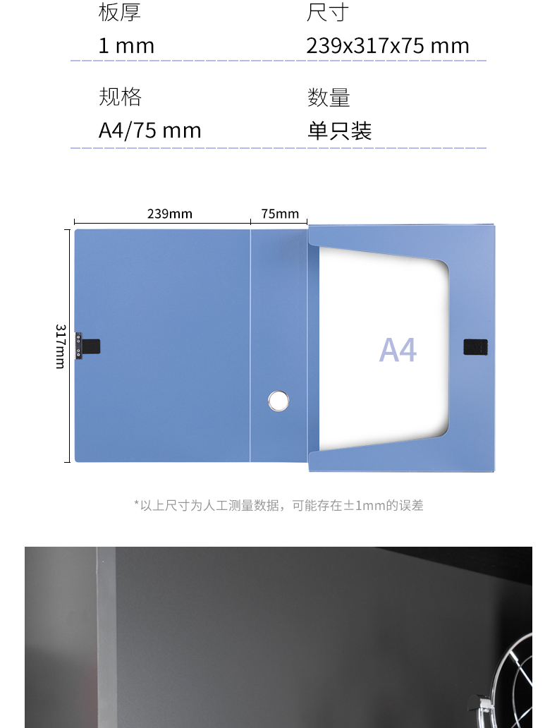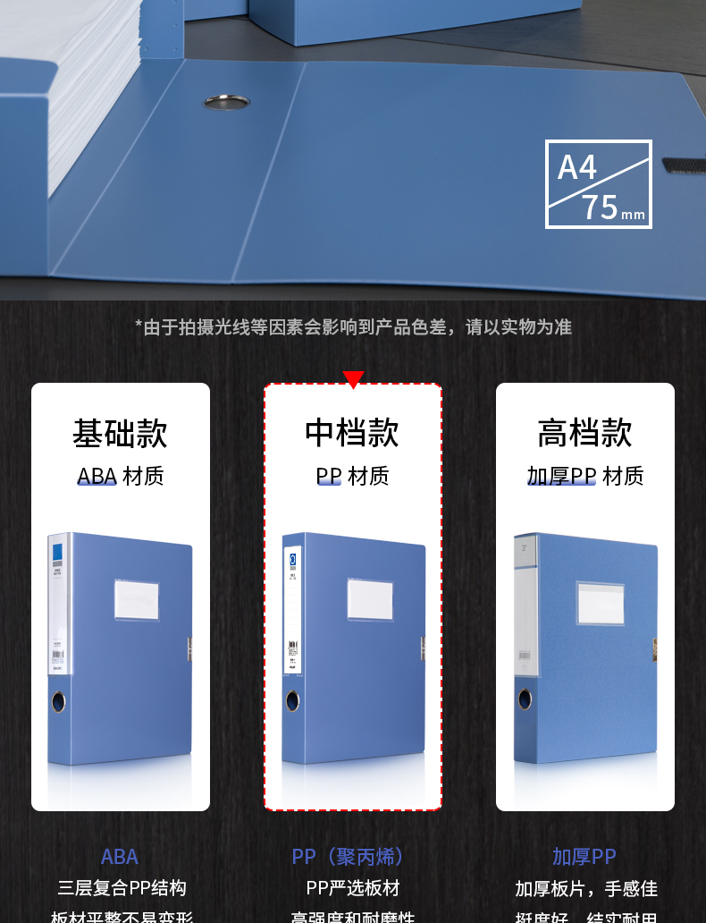 得力(deli)5604(蓝)档案盒(粘扣)237*318*75mm