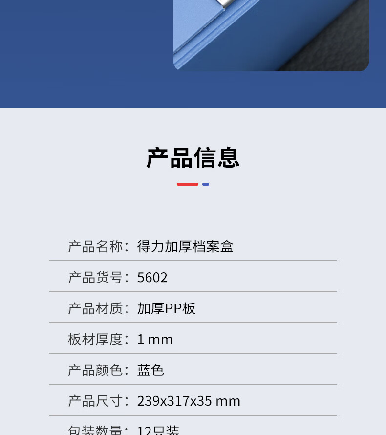 得力(deli)档案盒5602 A4/35mm 蓝色
