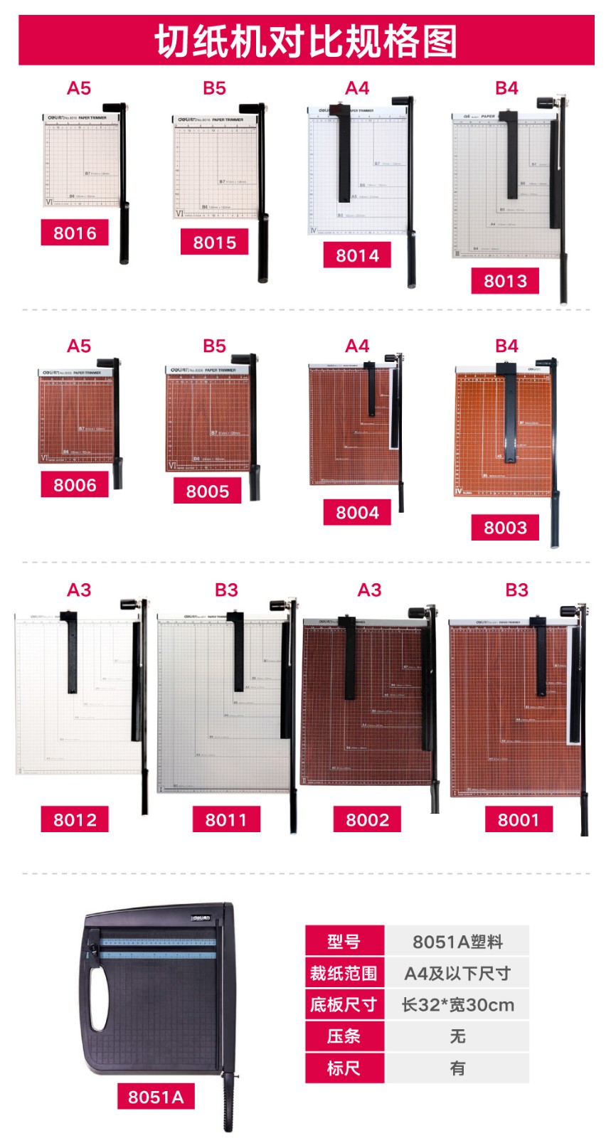 得力(deli)切纸机a4/a3 裁纸机 照片刀切纸板切纸刀裁纸刀多规格 8004切纸机(可裁切A4规格)
