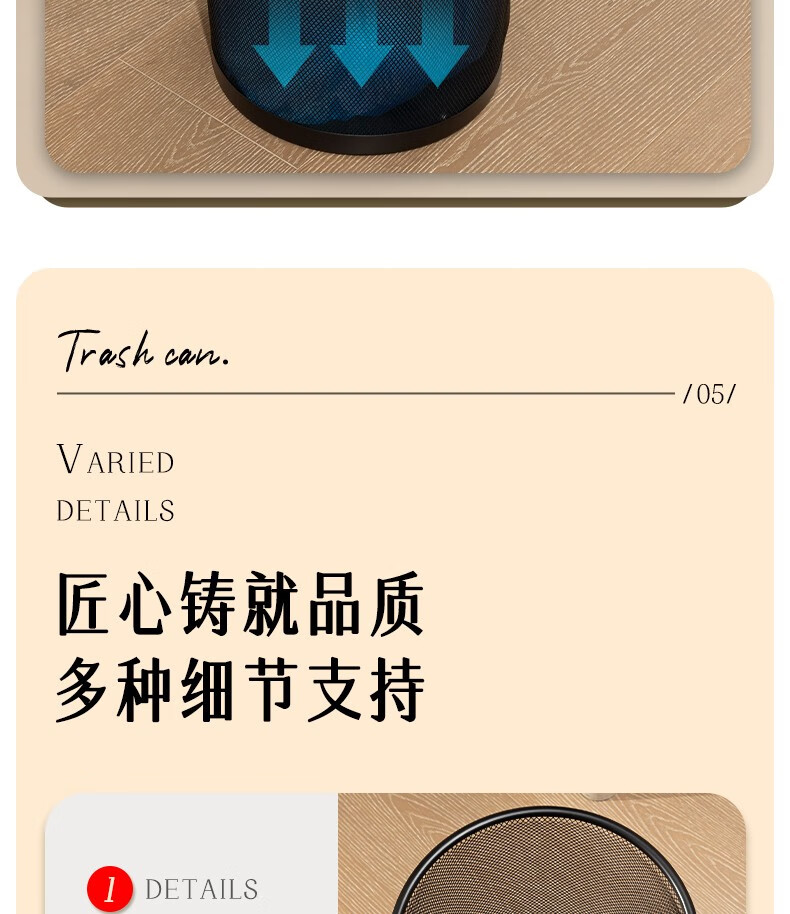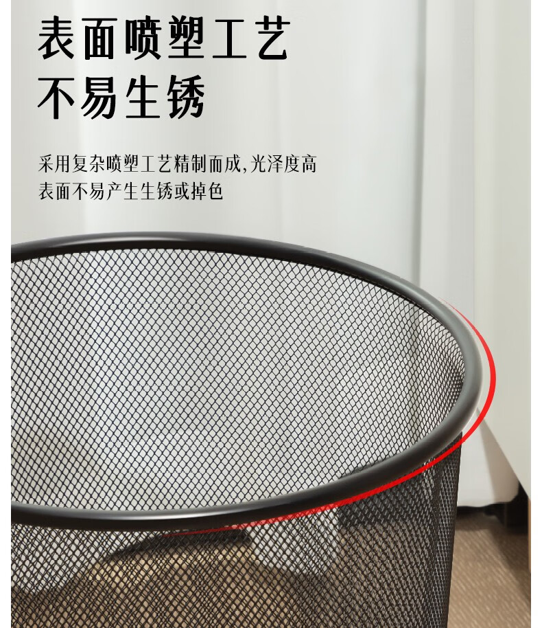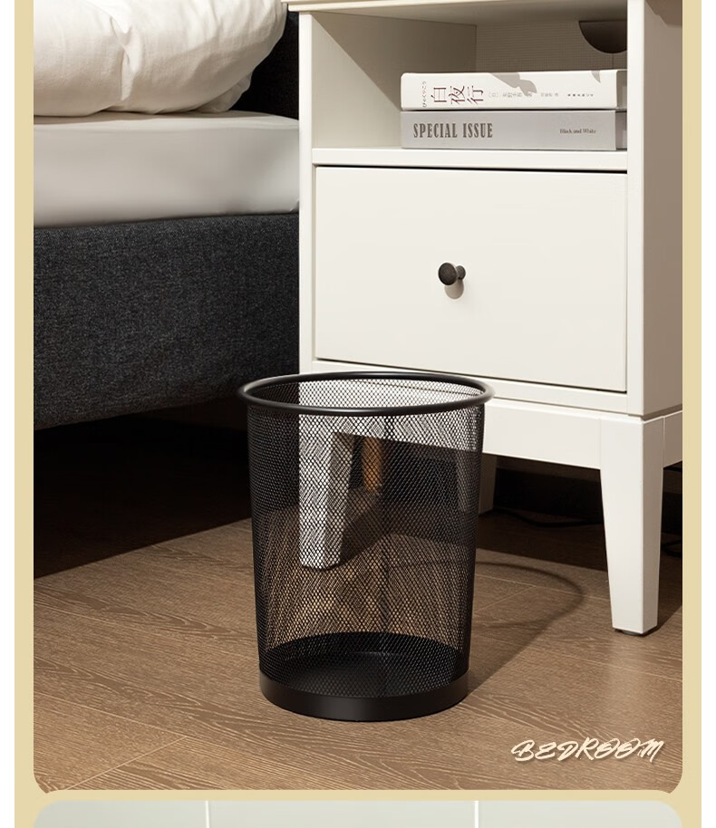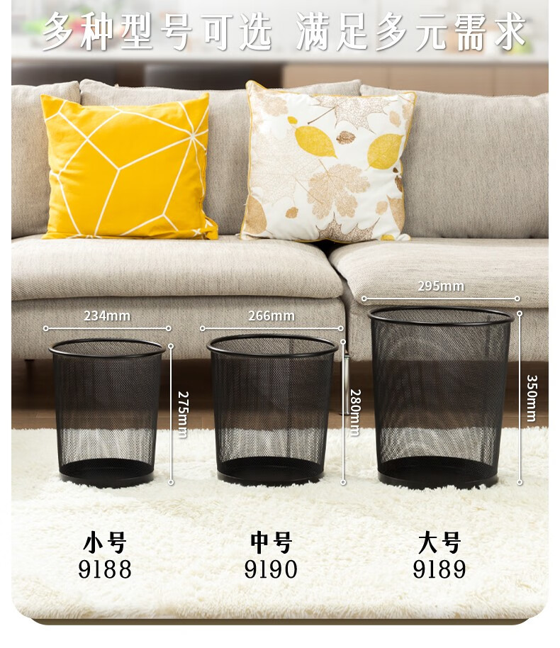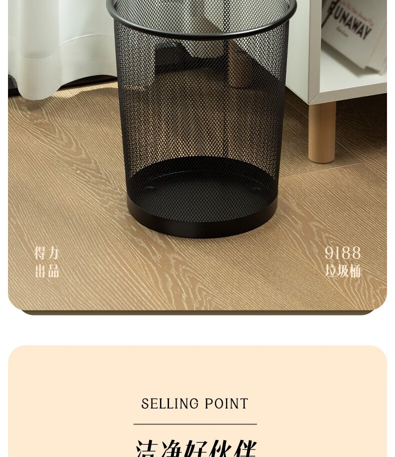 得力(deli)金属网格垃圾桶 家用清洁垃圾纸篓 黑色 办公用品厨房厕所 9188金属铁网(直径234mm)小号