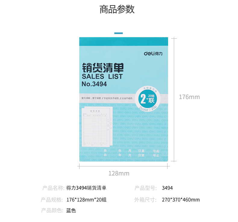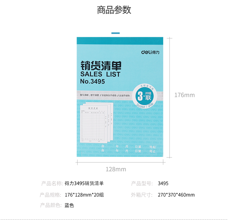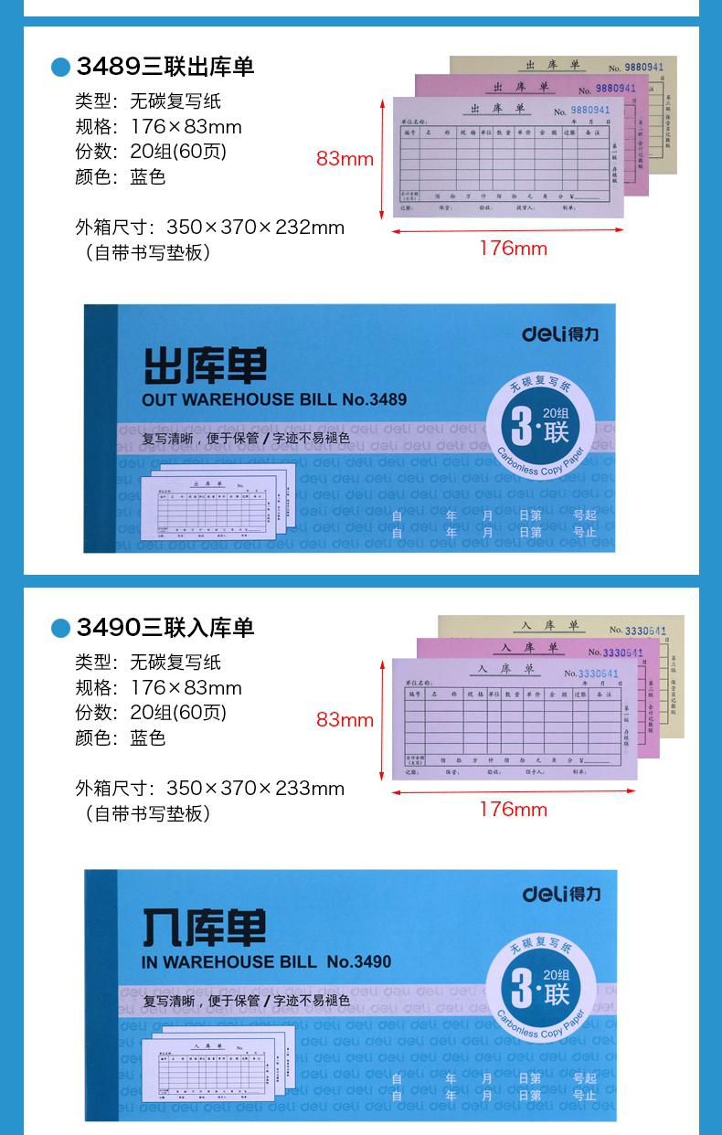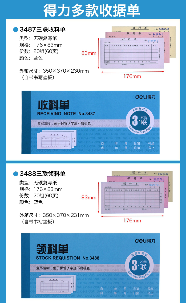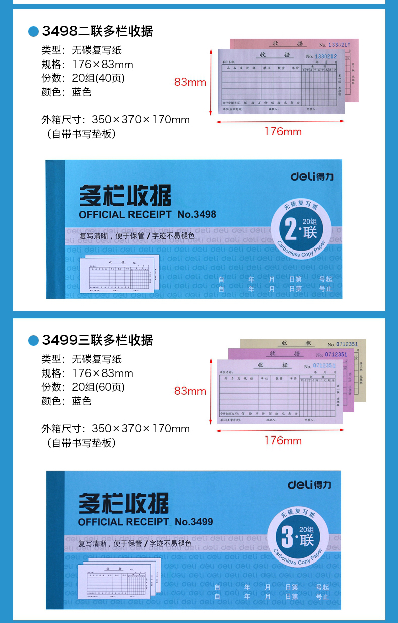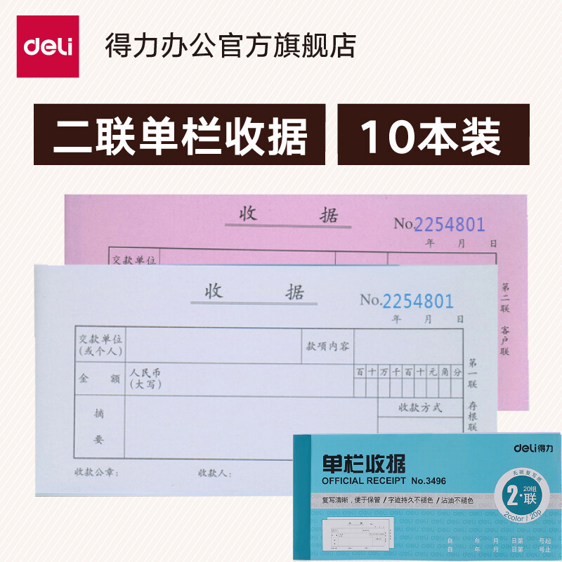 得力(deli) 【10本装】单据票据三联/多栏出入库单销售清单送货单批发 经济款 3496 二联单栏收据