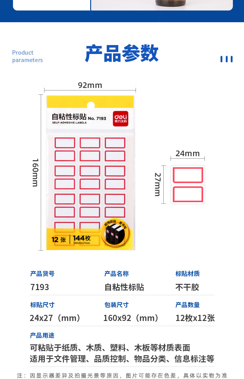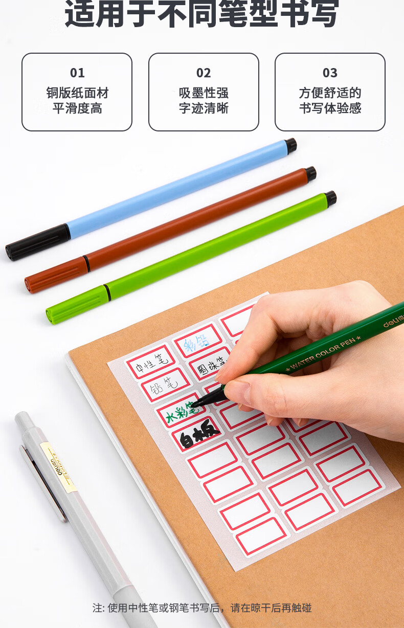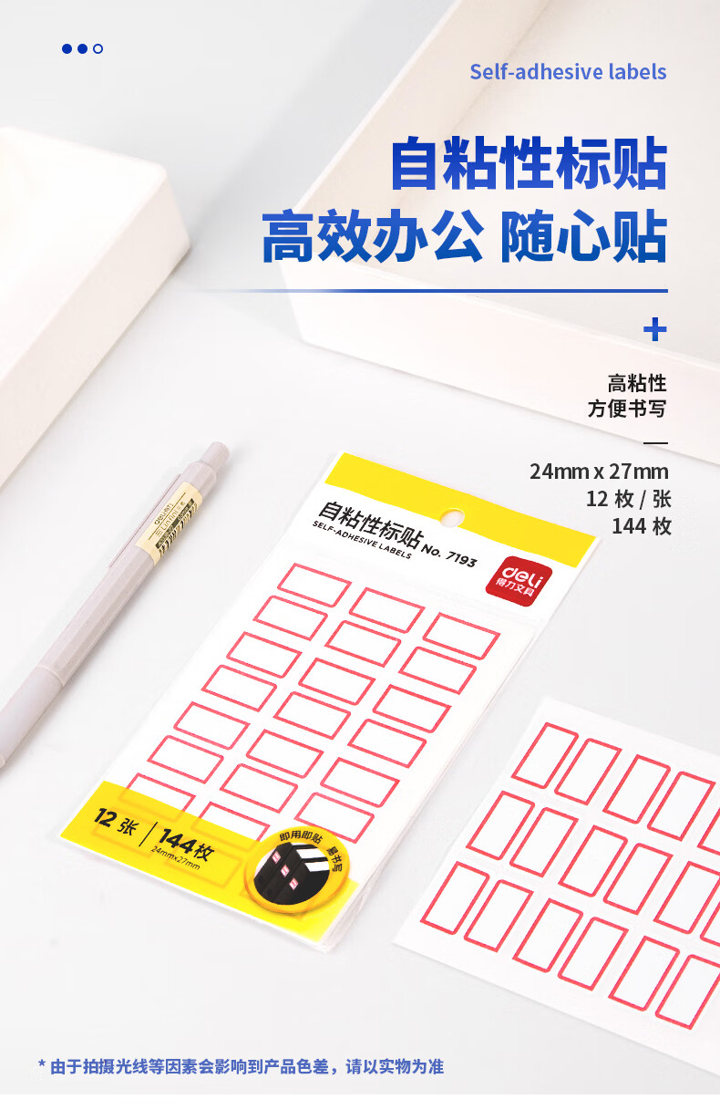 得力(deli) 144枚24*27mm红框不干胶标签贴纸自粘性标贴姓名贴 7193