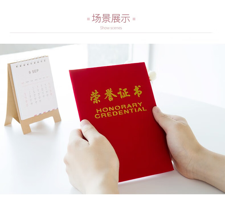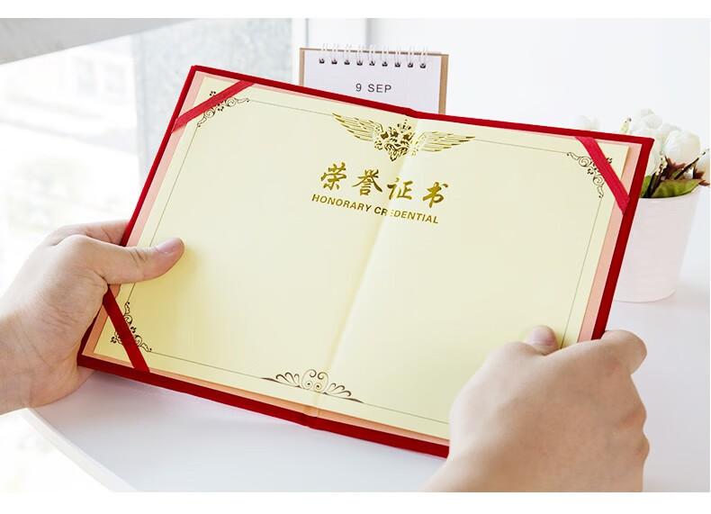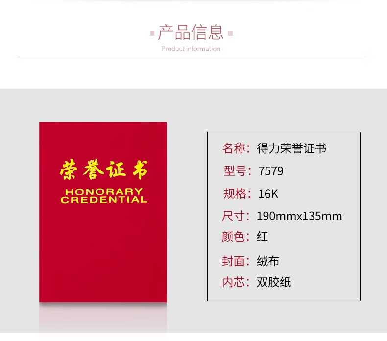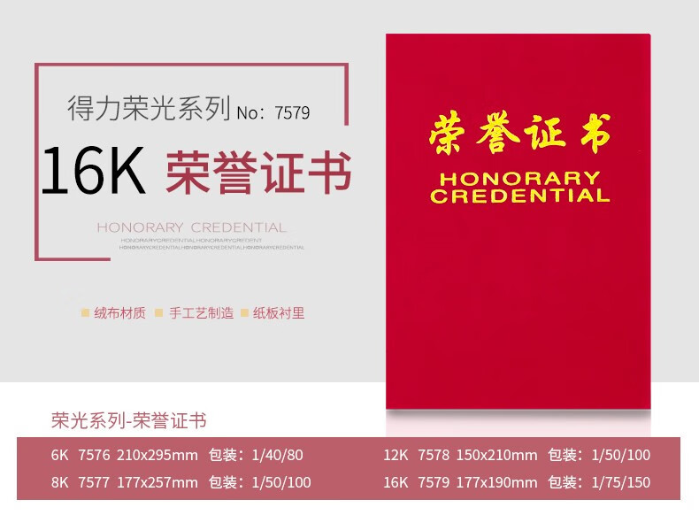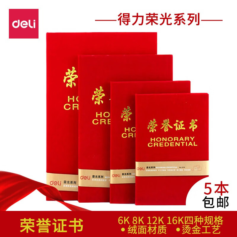 Deli/得力荣誉证书A4绒布绒面烫金封面6K/8K/12K多种规格高档证书 7580/6K(295×210mm)