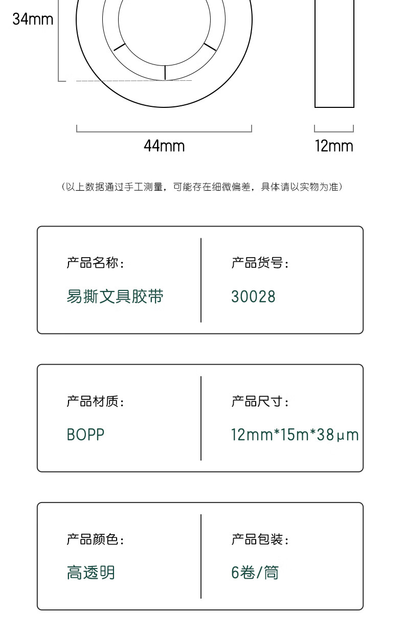 得力透明胶带12mm*15m*38um 6卷/筒30028