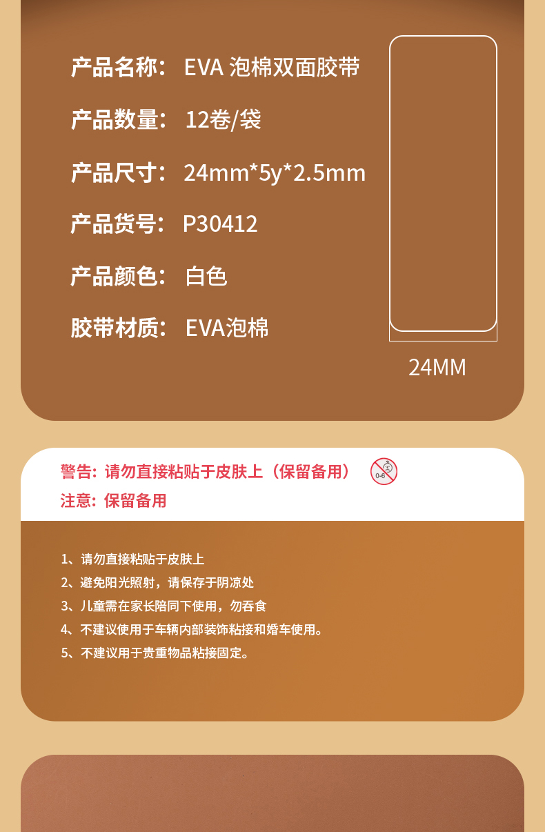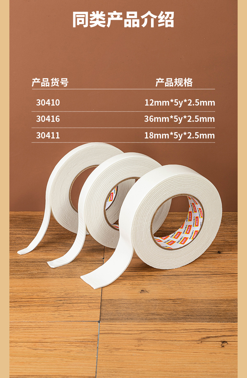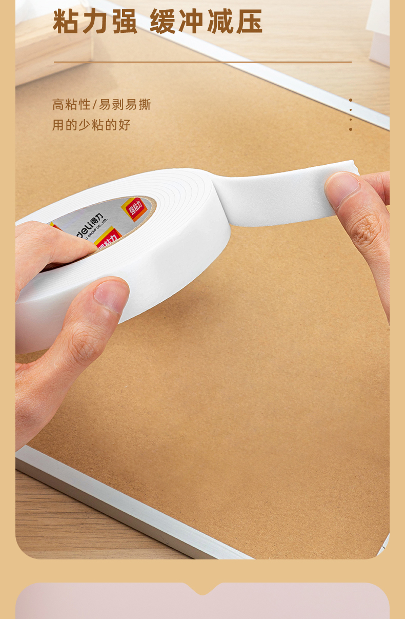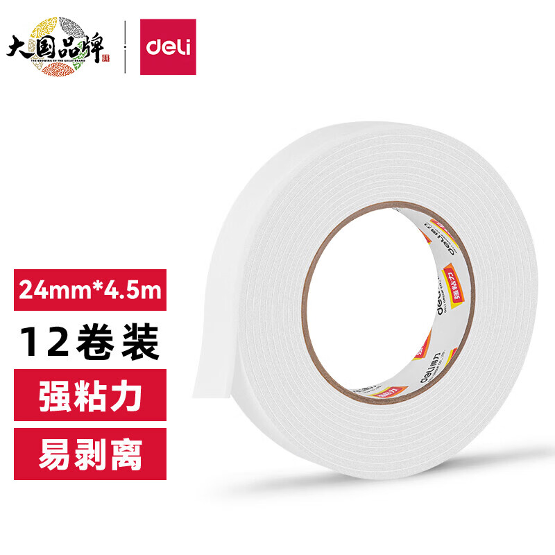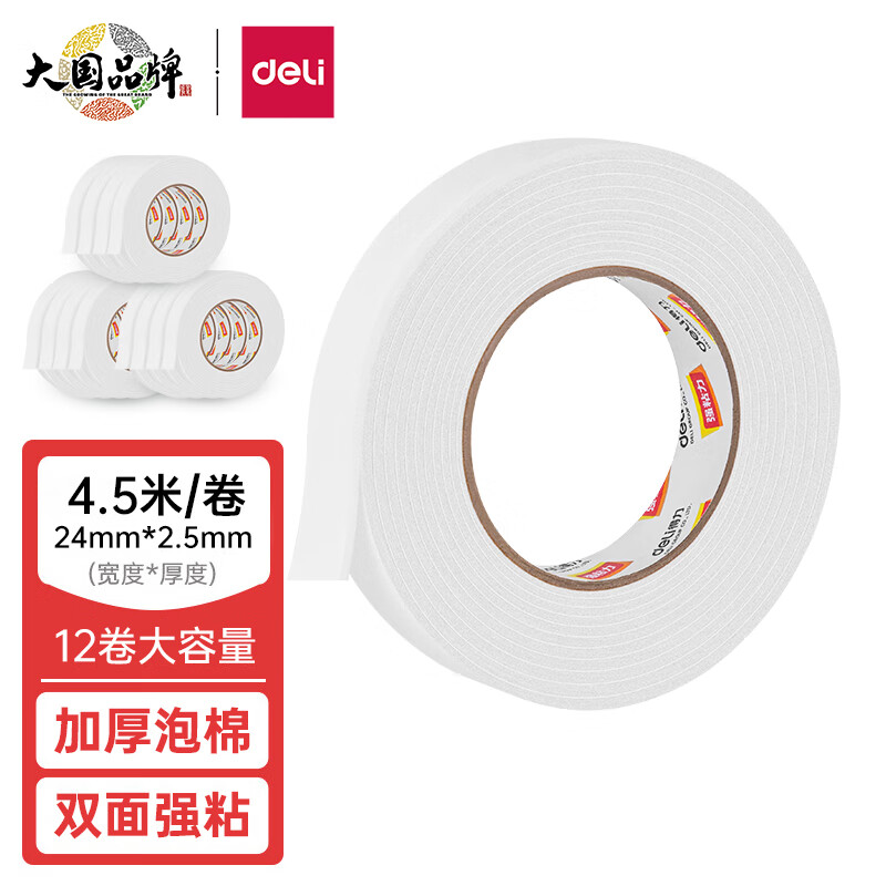 得力(deli)强力高粘度EVA泡棉双面胶带 24mm*5y*2.5mm/卷 白色30412
