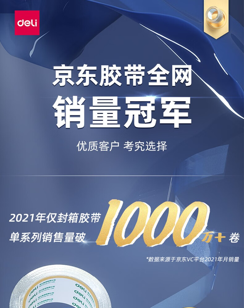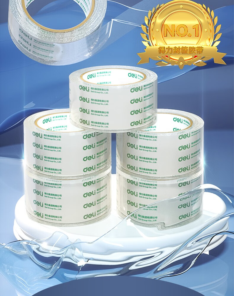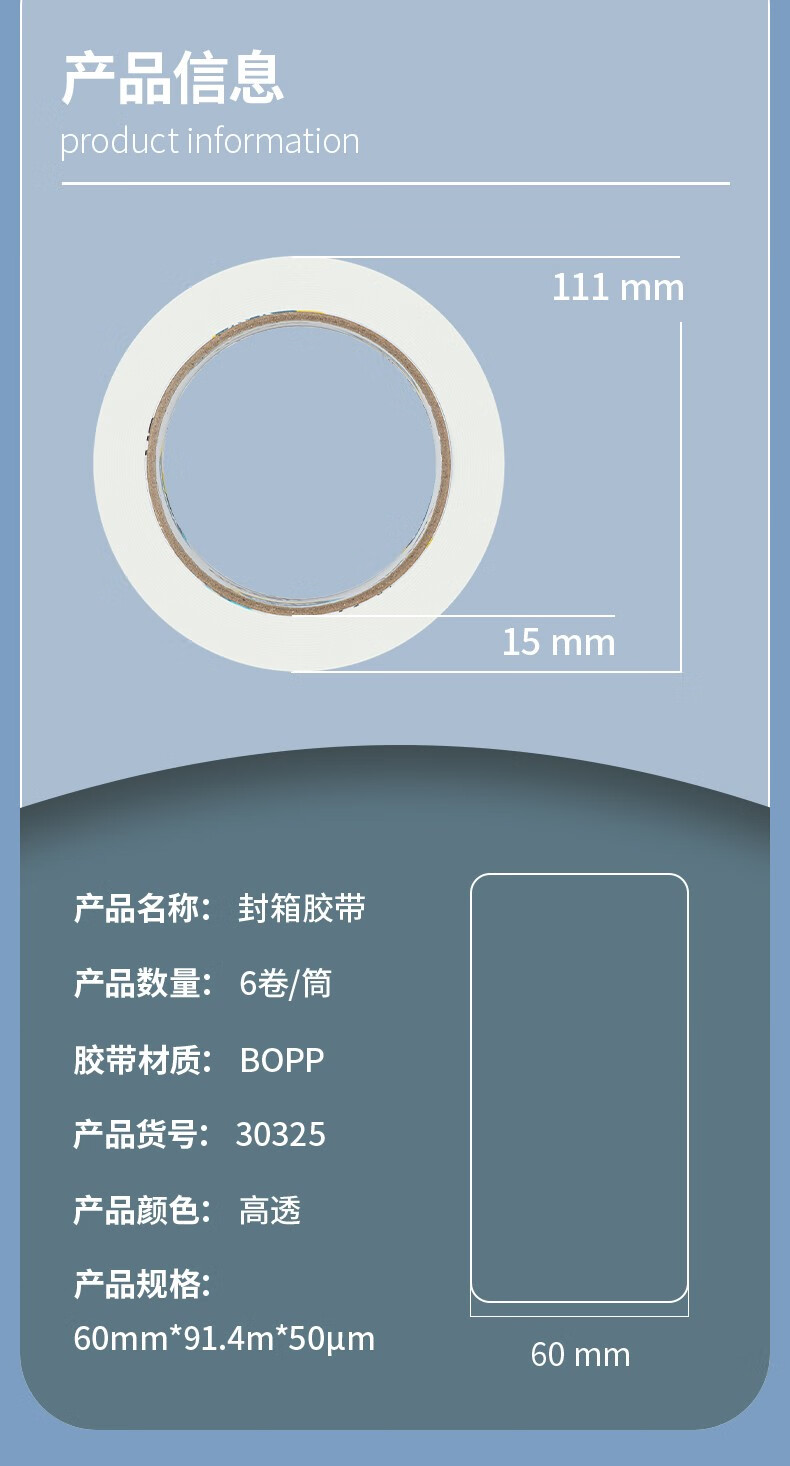 得力(deli)透明封箱胶带大卷加厚宽强力 60mm*100m 33195A (5卷装/筒)