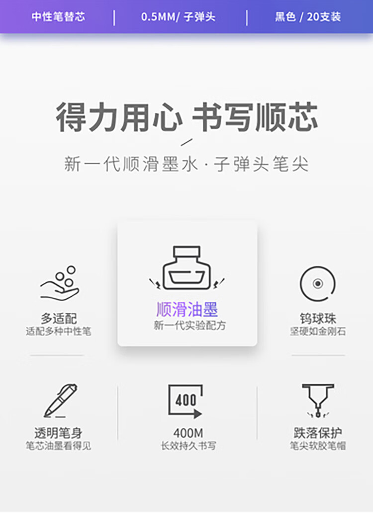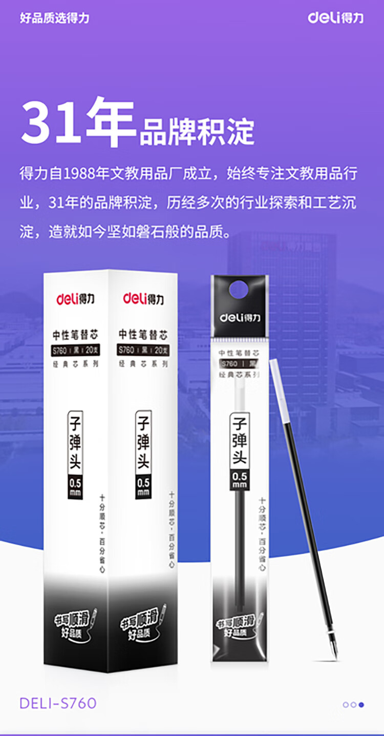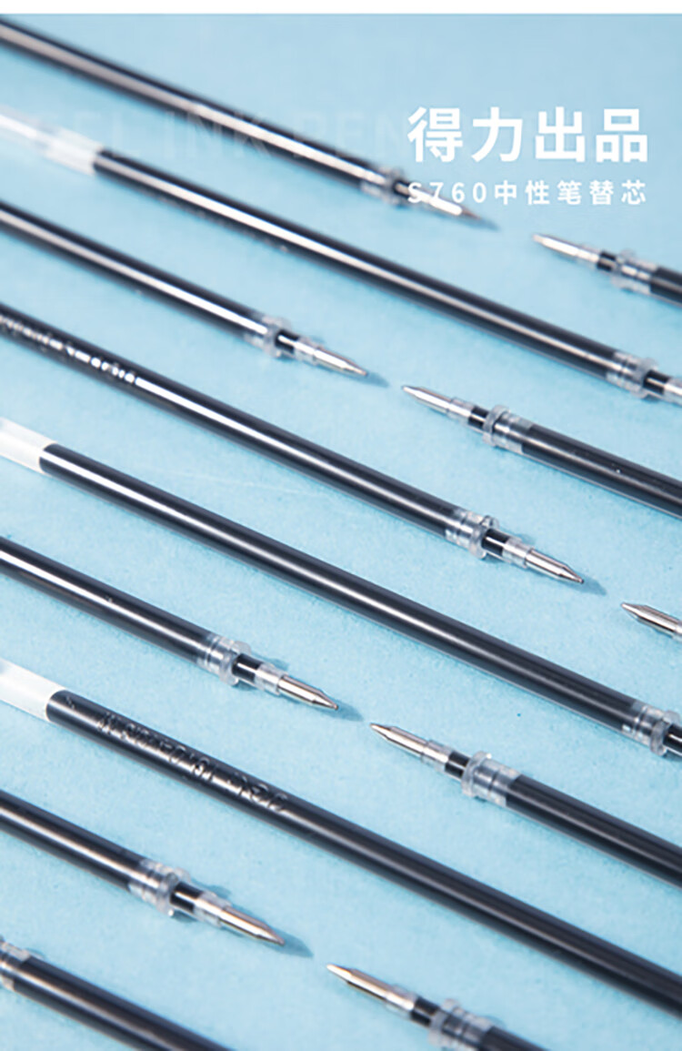 得力S760中性笔芯直拔式可替换替芯0.5mm子弹头性笔水笔芯黑笔替芯 【S760黑色/20支+6600es】
