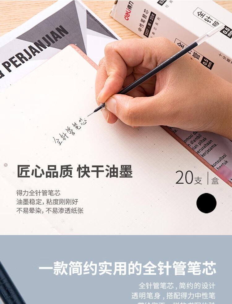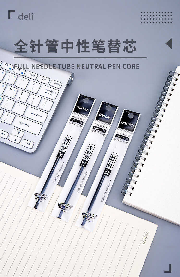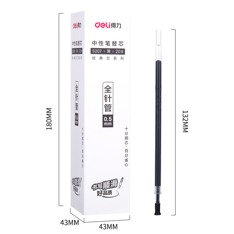 得力(deli)S207 0.5mm黑色中性笔笔芯 【s207笔芯黑色】