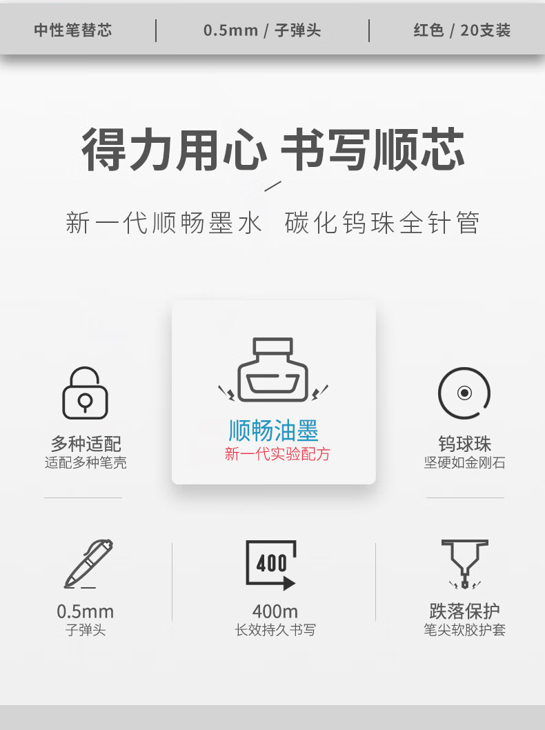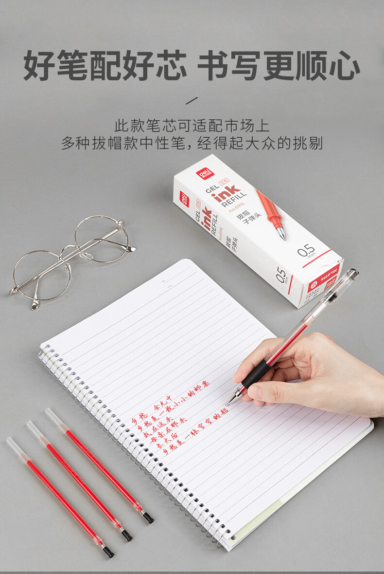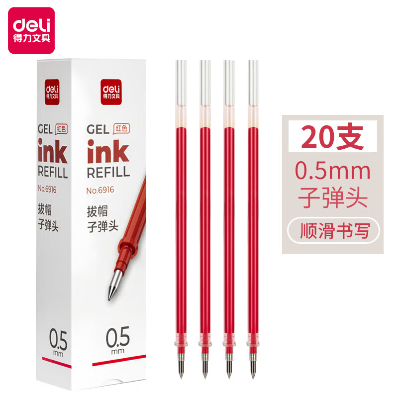 得力(deli)0.5mm红色中性笔笔芯 子弹头水笔签字笔替芯 20支/盒【6916替芯/20支红色】