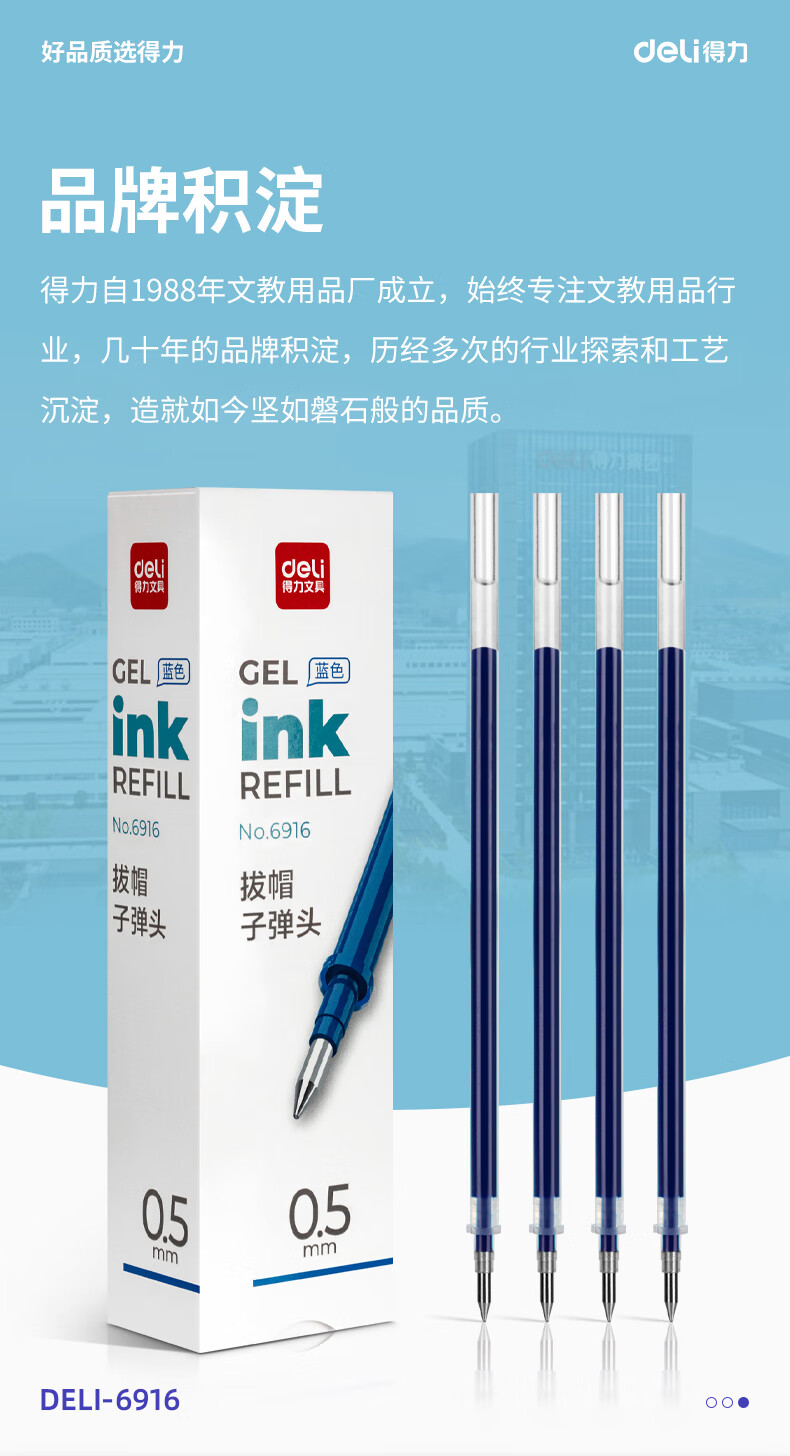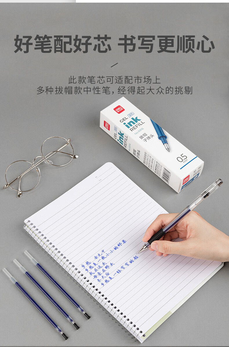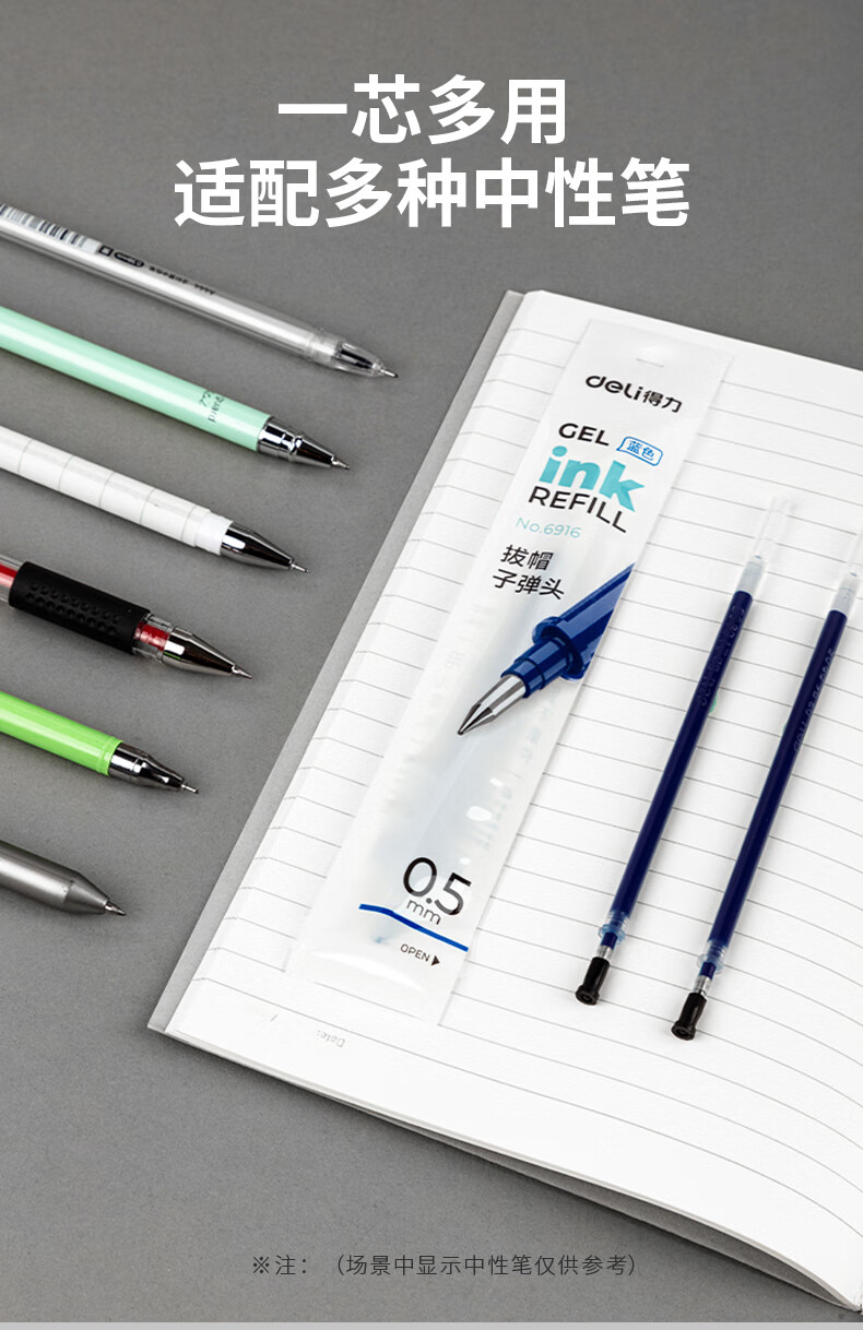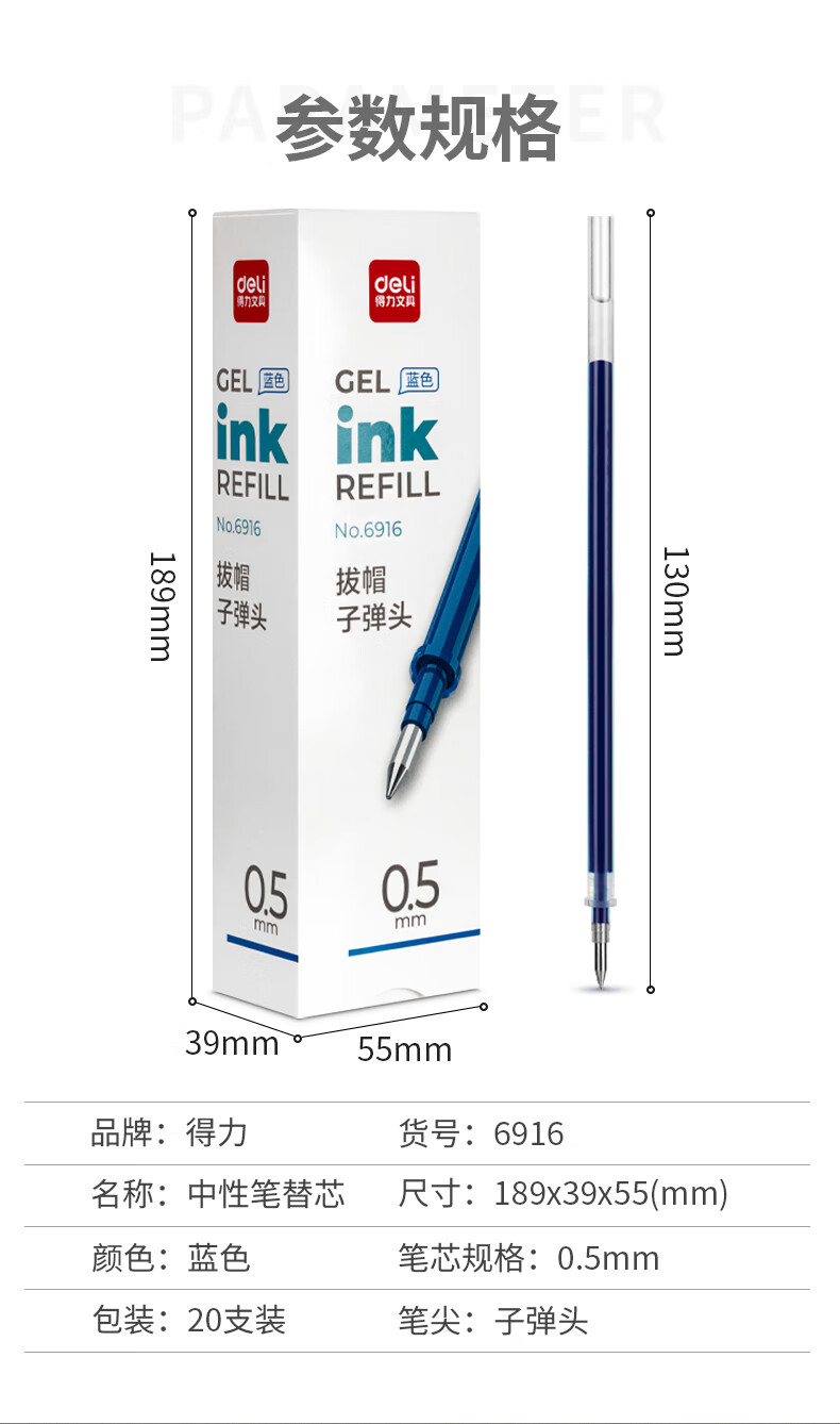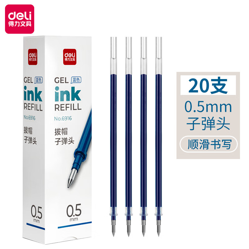 得力(deli)0.5mm蓝色中性笔笔芯 子弹头水笔签字笔替芯 20支/盒【6916替芯/20支蓝色】