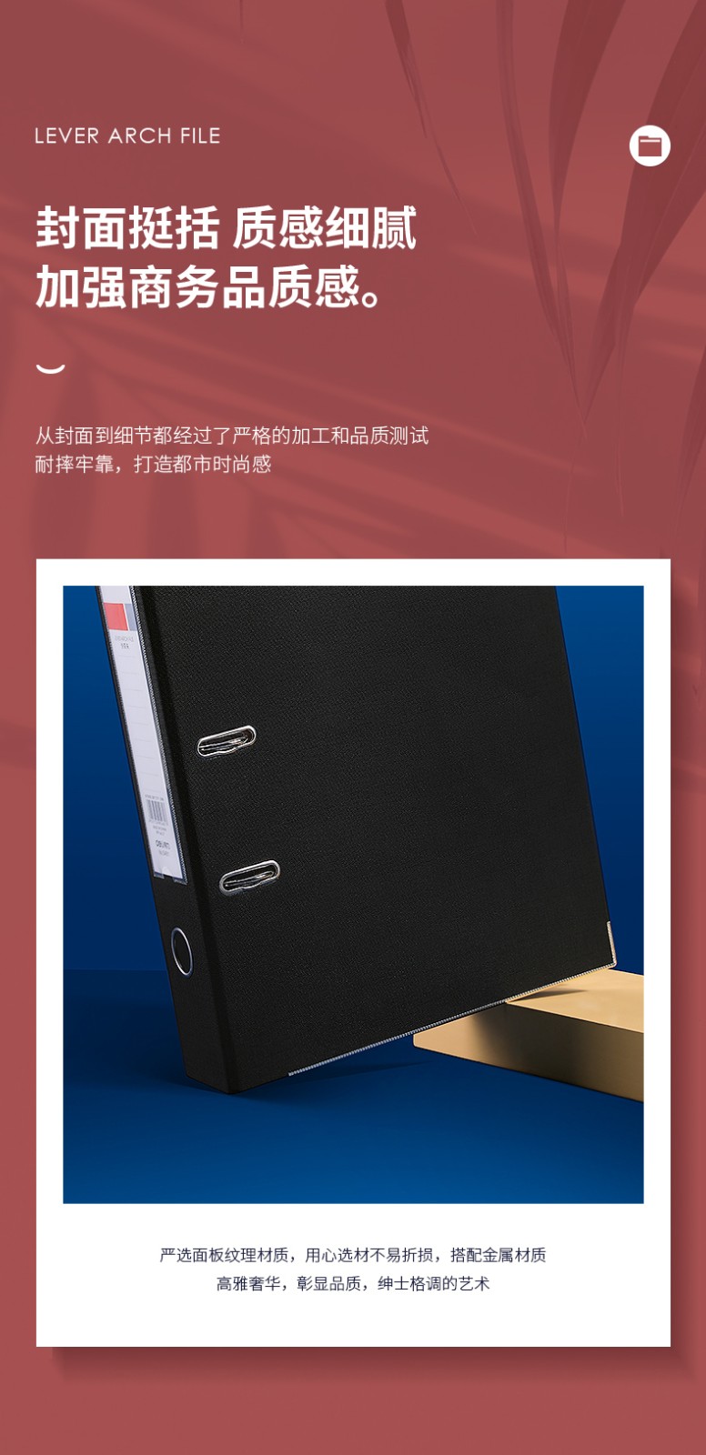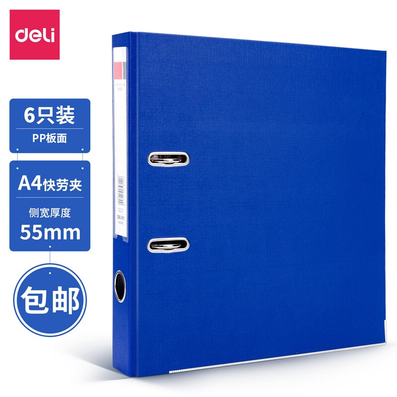 得力(deli)欧式带孔A4快劳夹活页夹打孔夹 5481 背宽55mm 蓝色