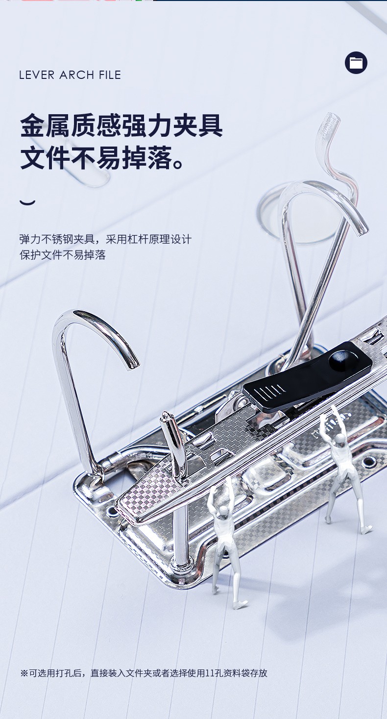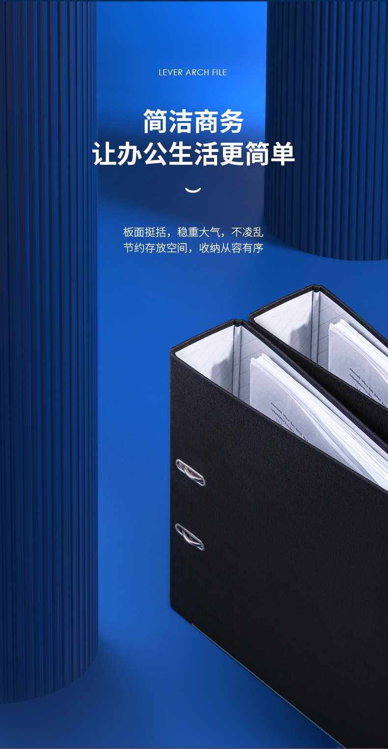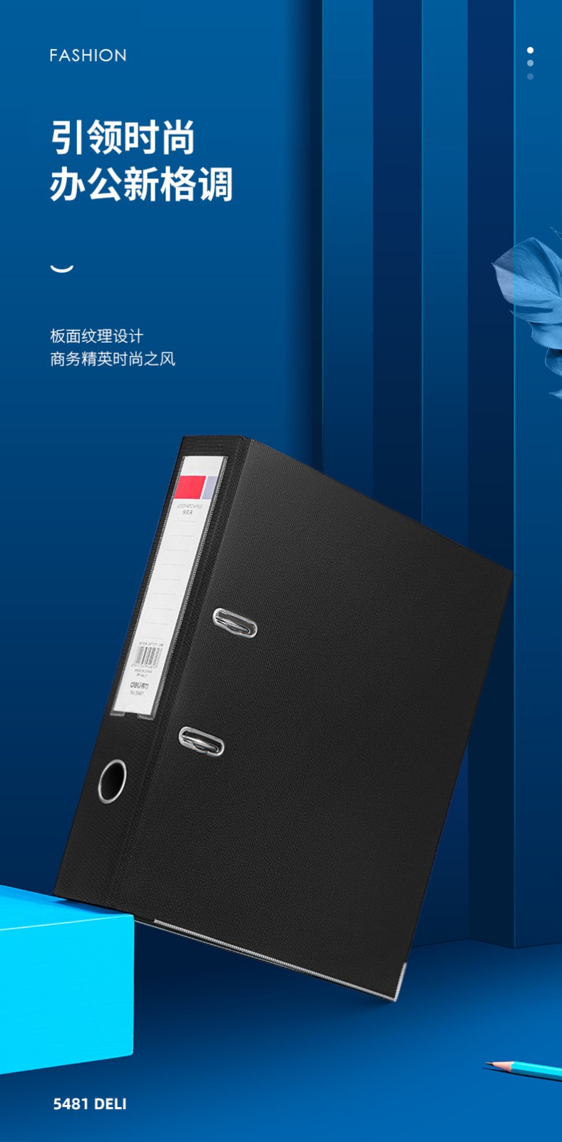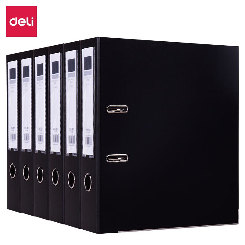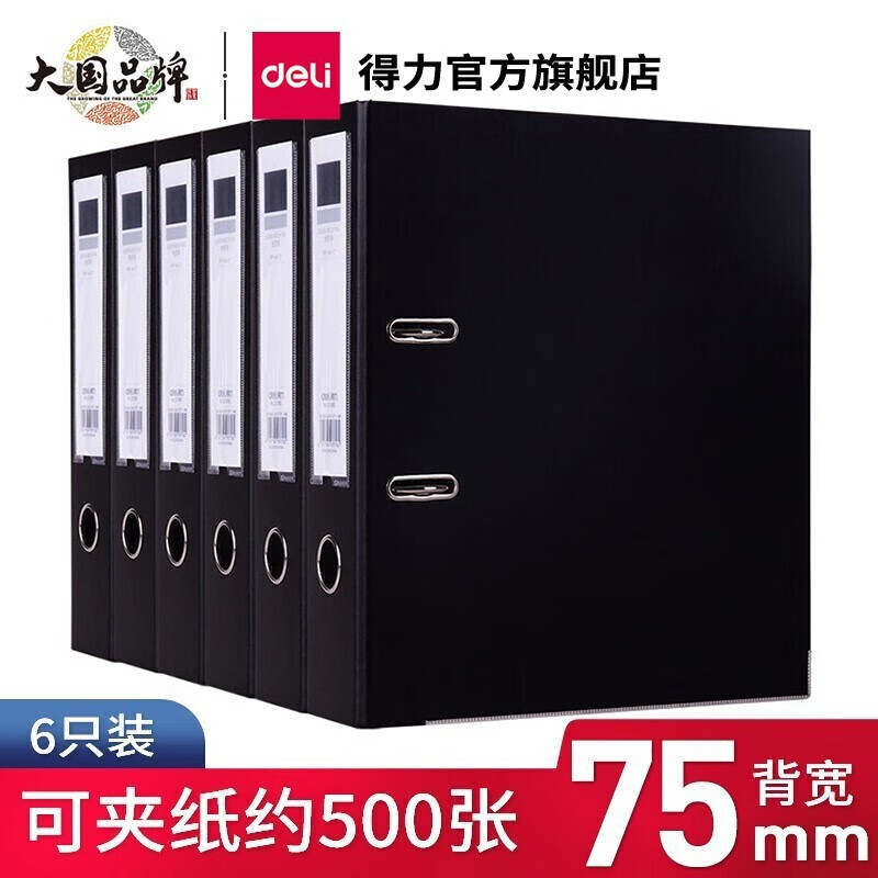 得力(deli)欧式带孔A4快劳夹活页夹打孔夹 5480 5481 背宽75mm 黑色六个装