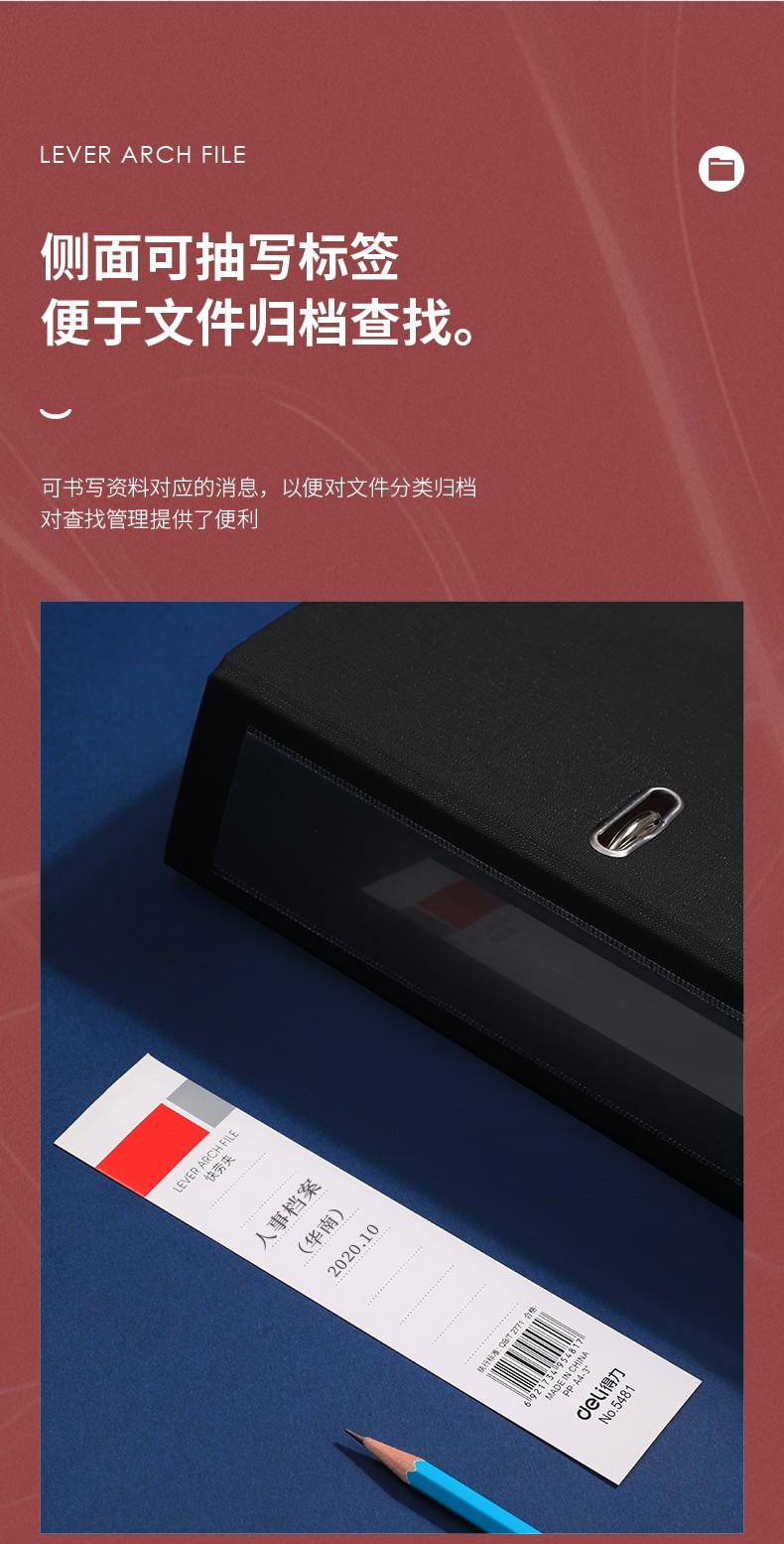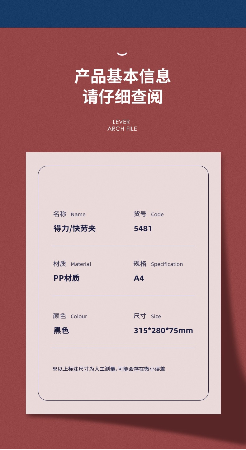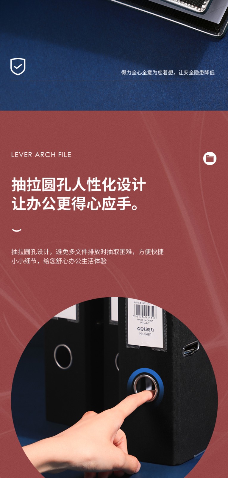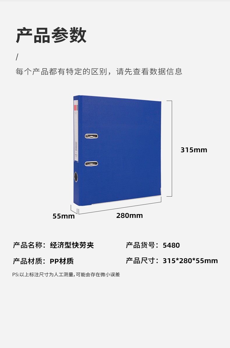 得力(deli)欧式带孔A4快劳夹活页夹打孔夹 5480 5481 背宽75mm 蓝色六个装