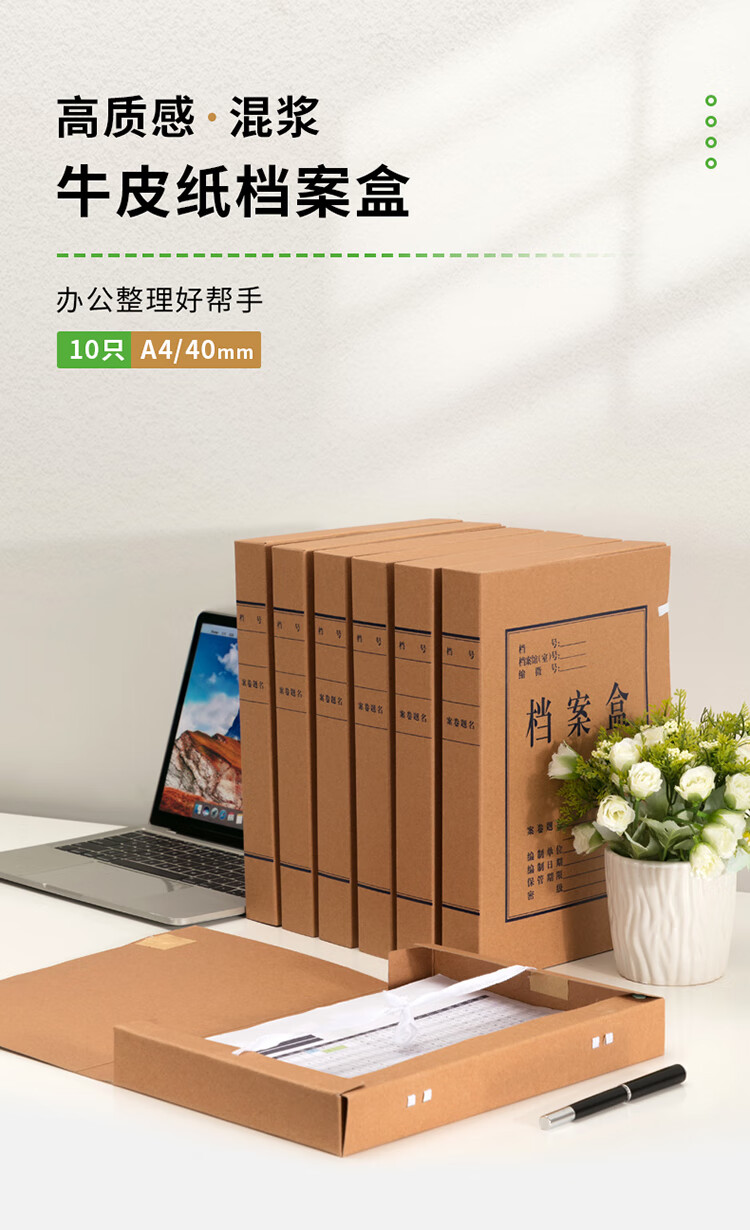 得力(deli)10只40mm250g牛皮纸加厚档案盒5921