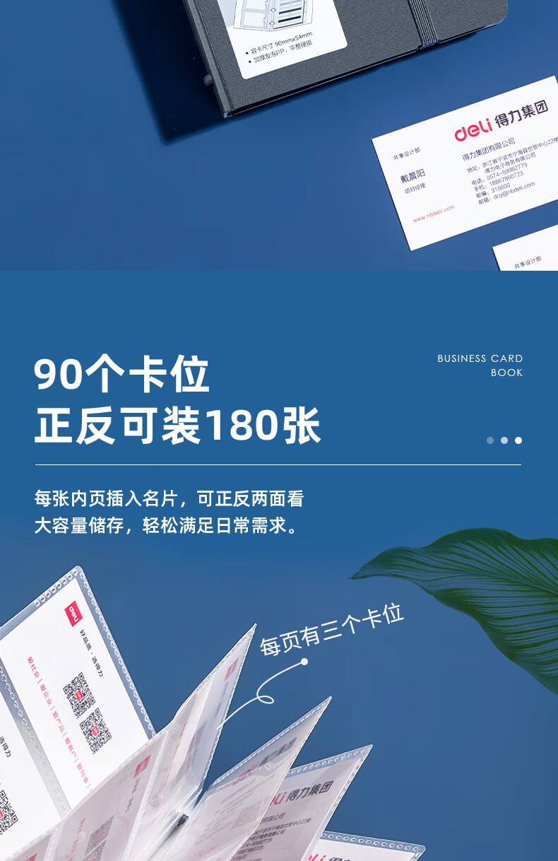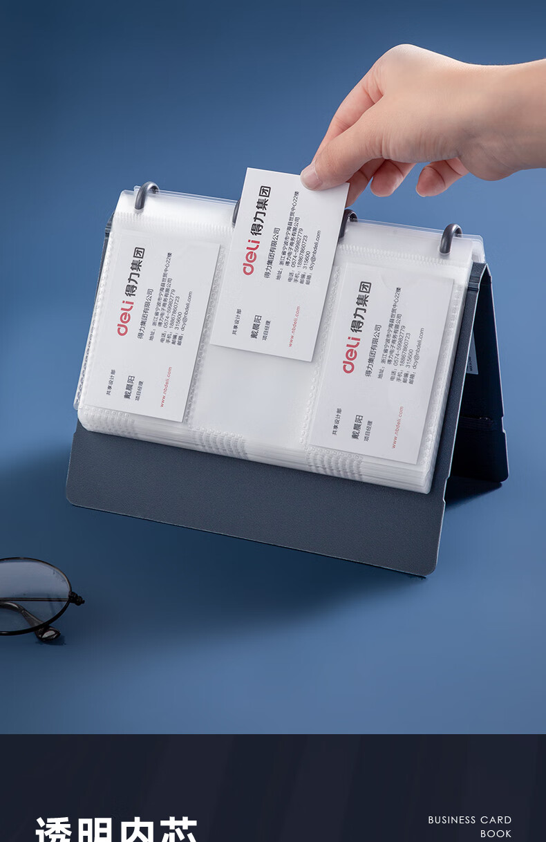 得力(deli)活页带捆绳名片册 名片夹(180枚) 蓝色 5778