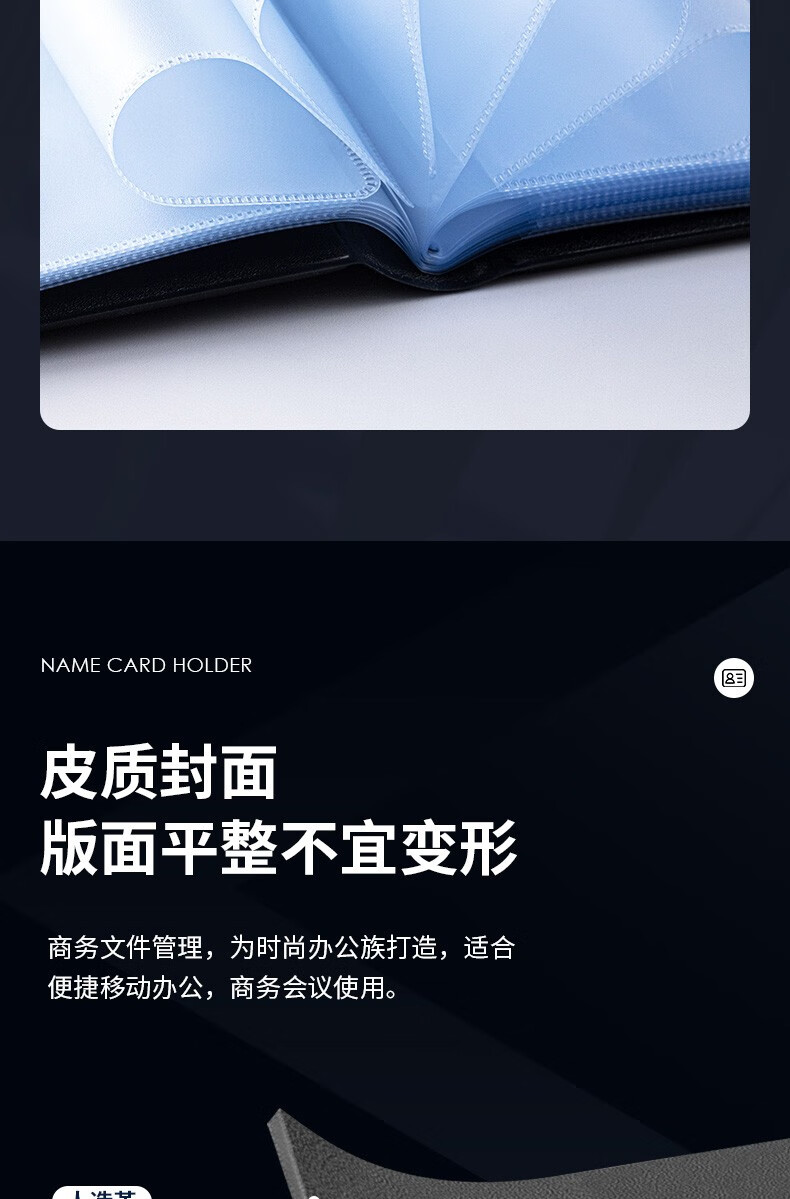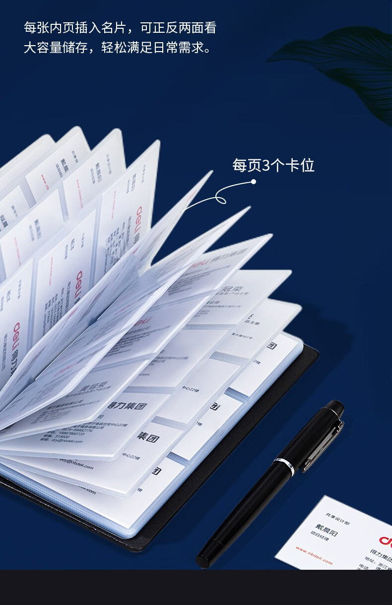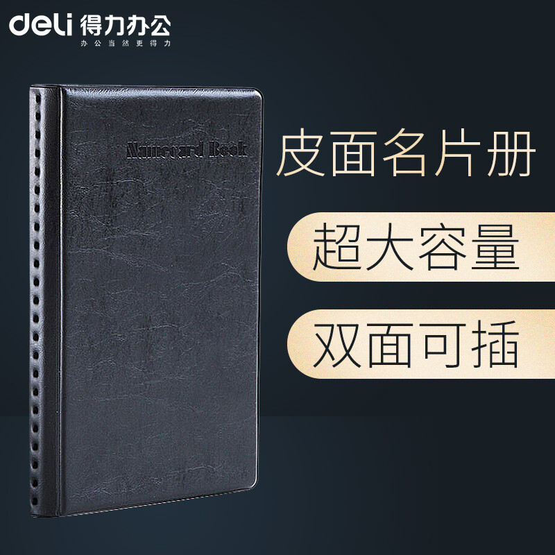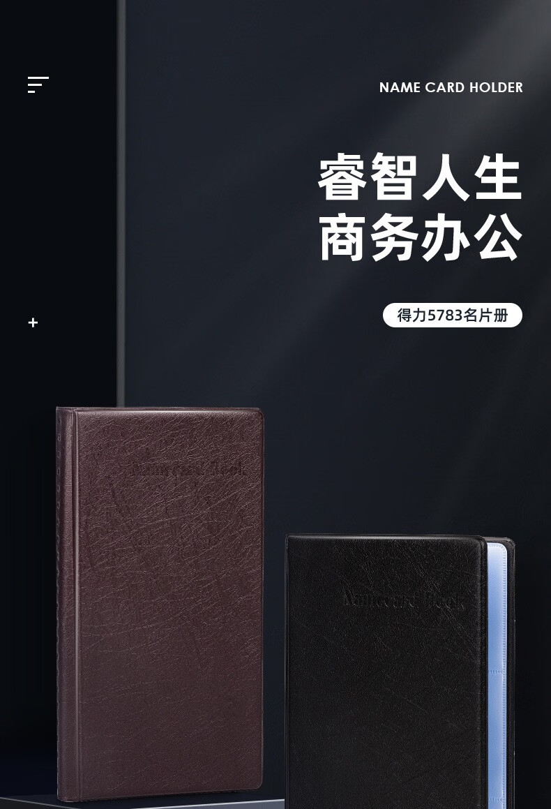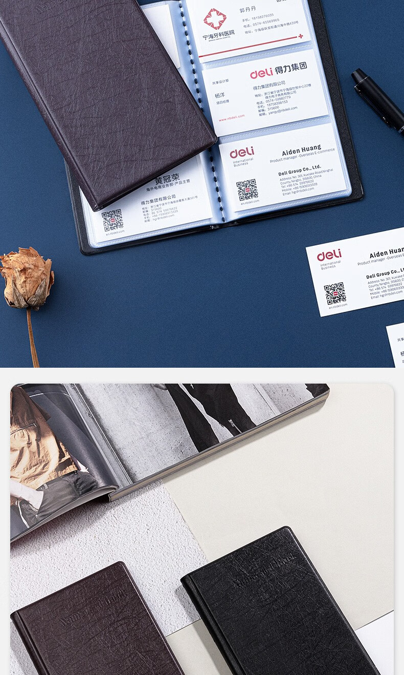得力(deli)5783摊开式硬皮名片册 商务便携名片收纳夹 黑色(180枚)