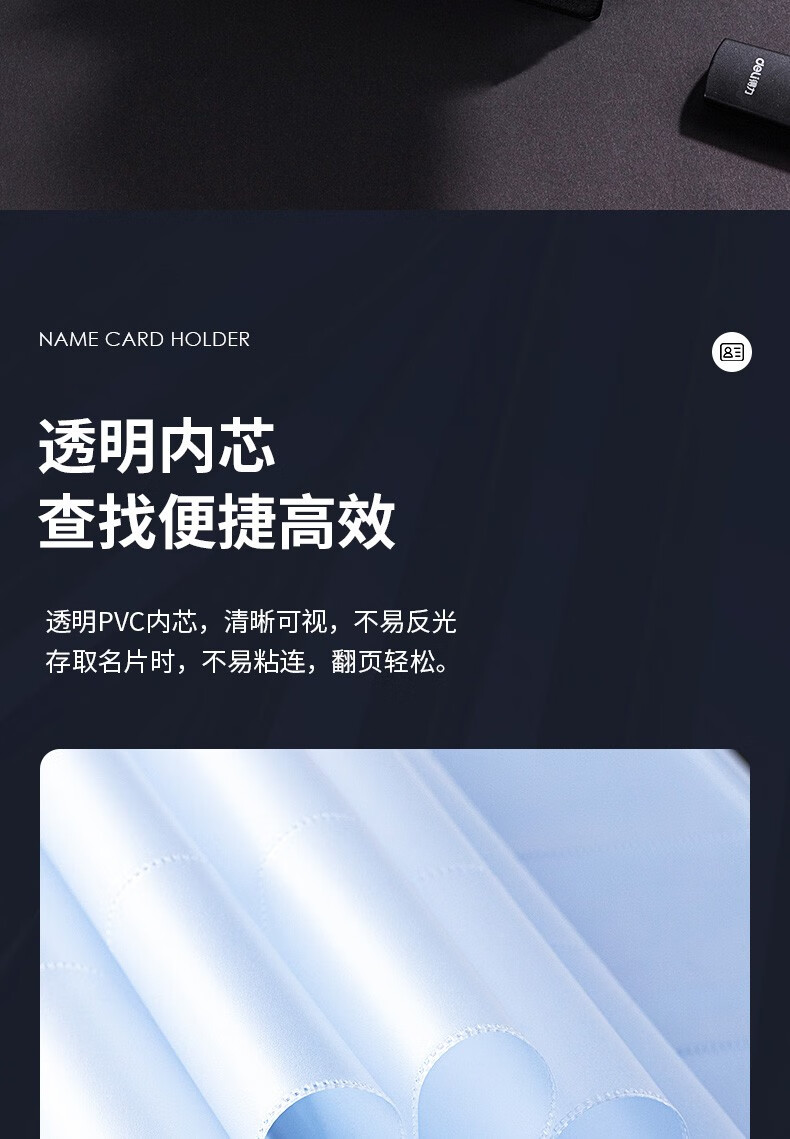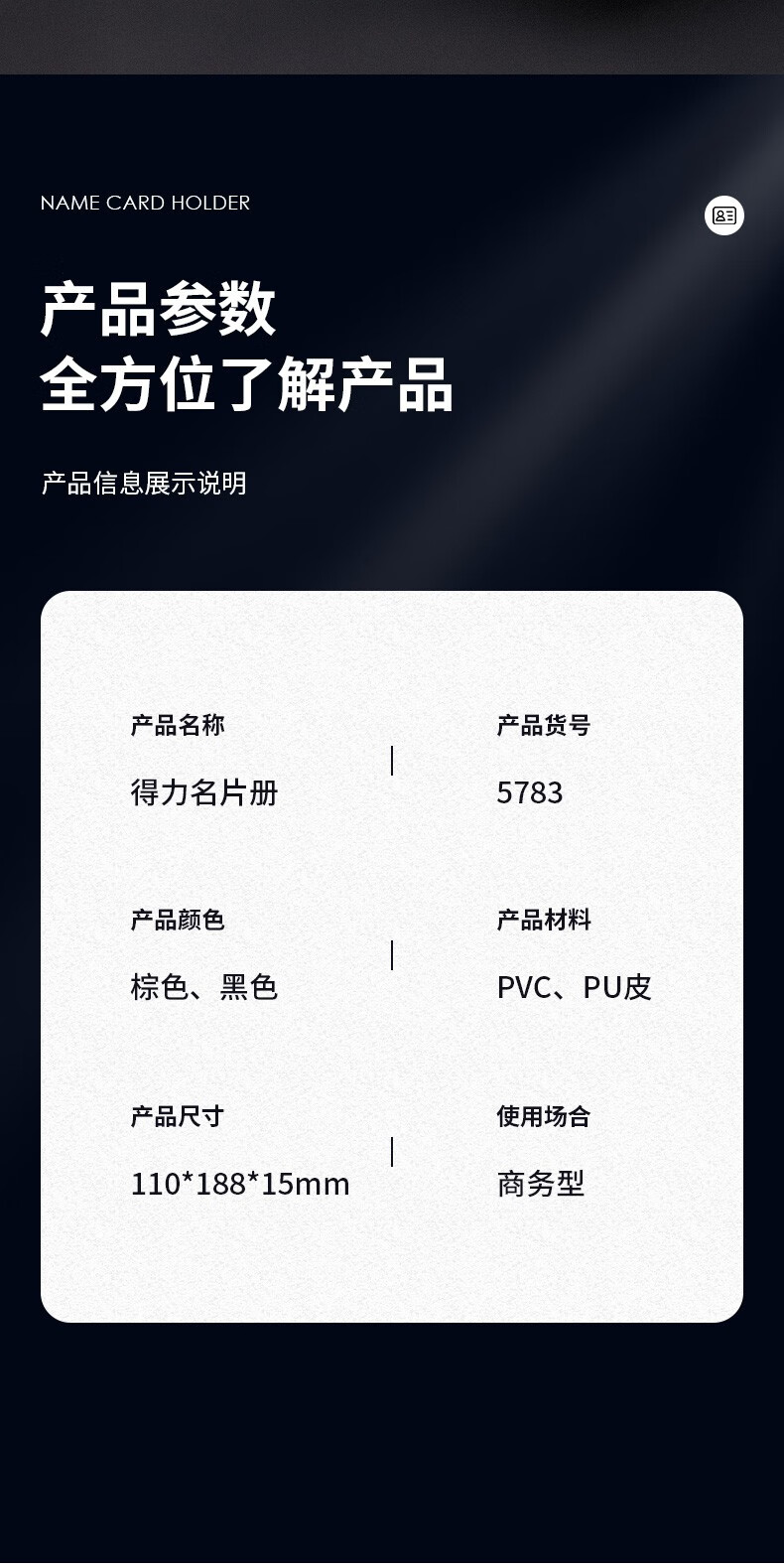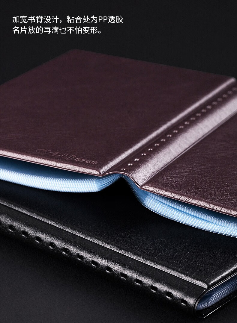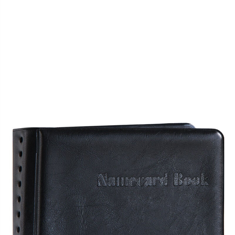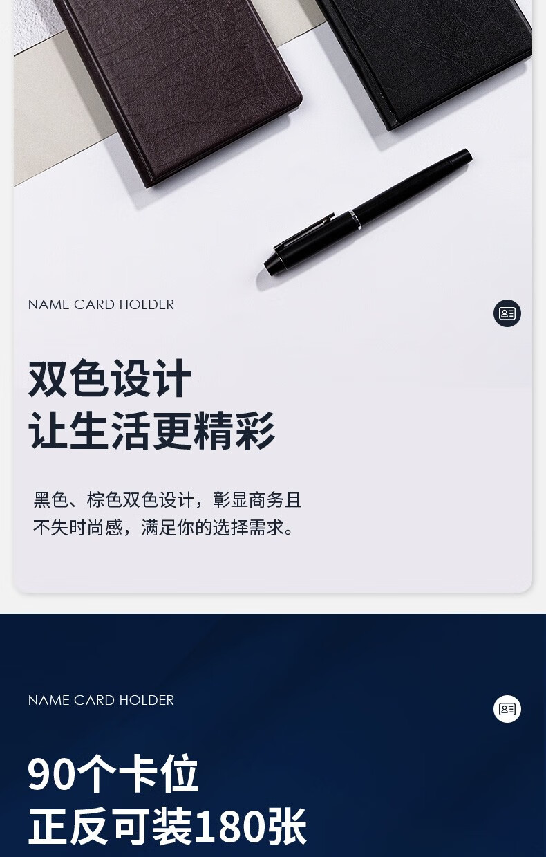 得力(deli)5783摊开式硬皮名片册 商务便携名片收纳夹 黑色(180枚)
