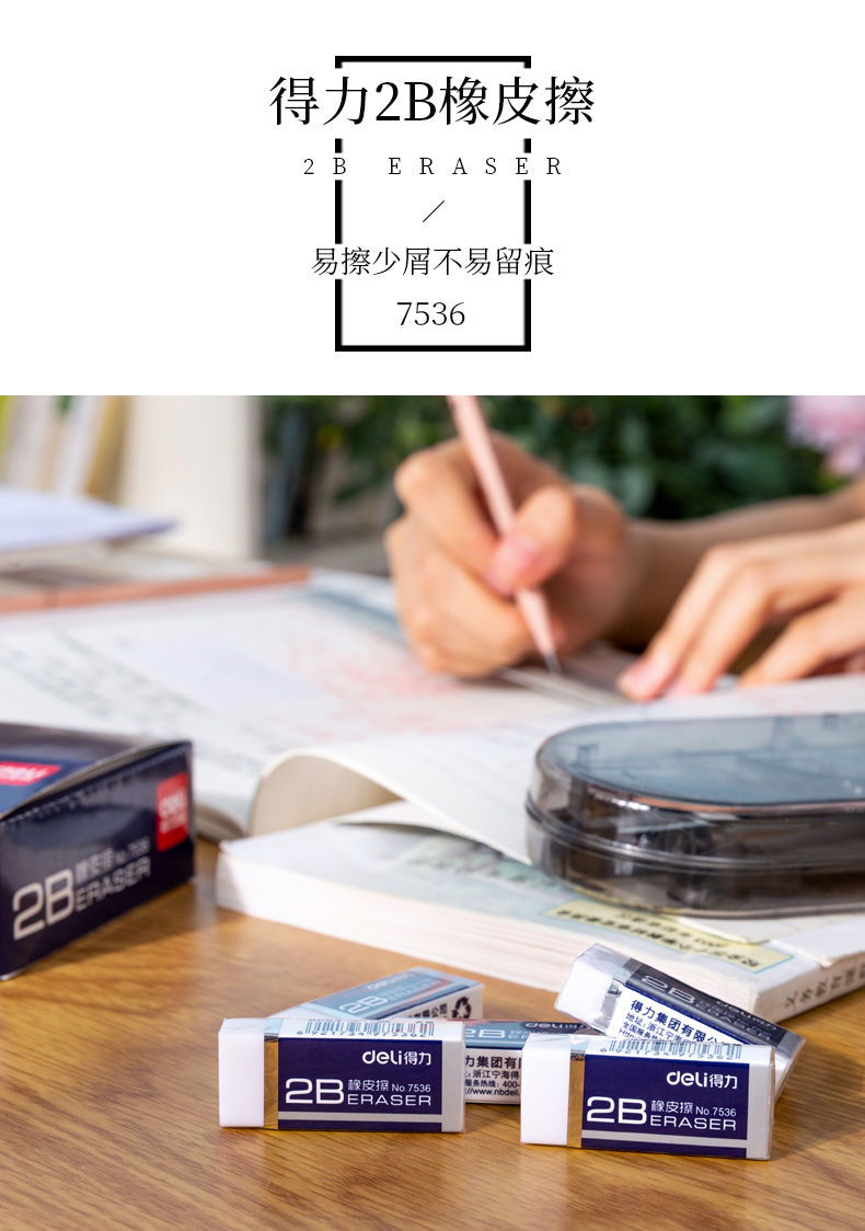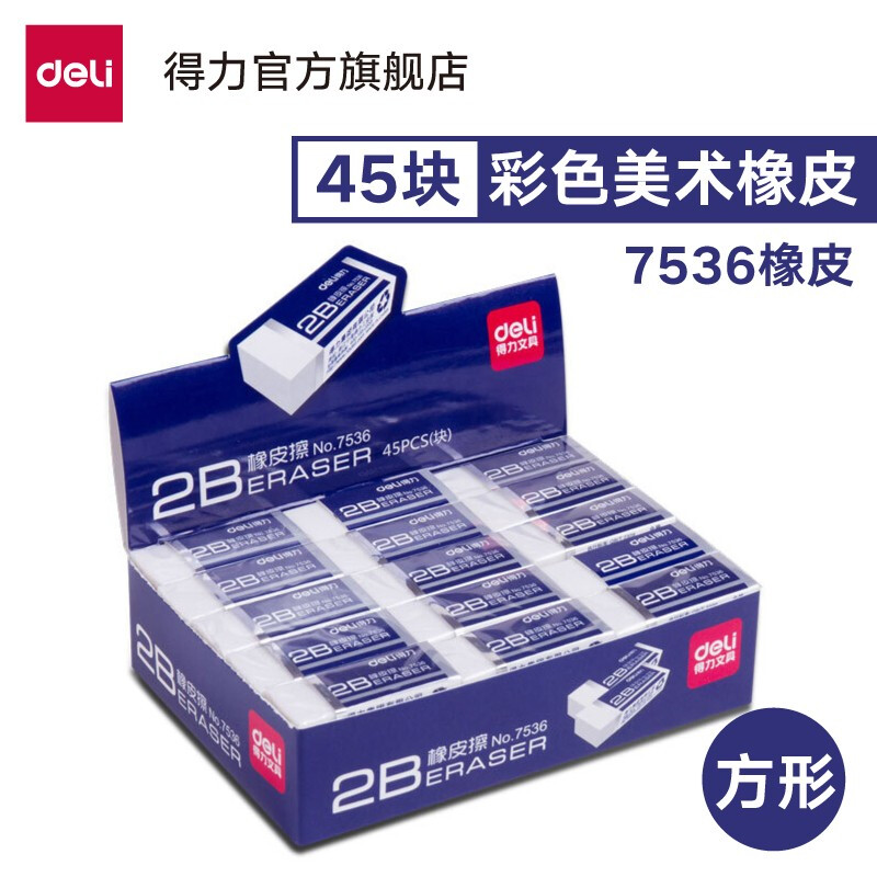 得力(deli)学生橡皮擦 彩色橡皮 学生考试绘图美术橡皮擦 学生用品 居家学习用品 开学推荐 7536(2B)白色小号 45块