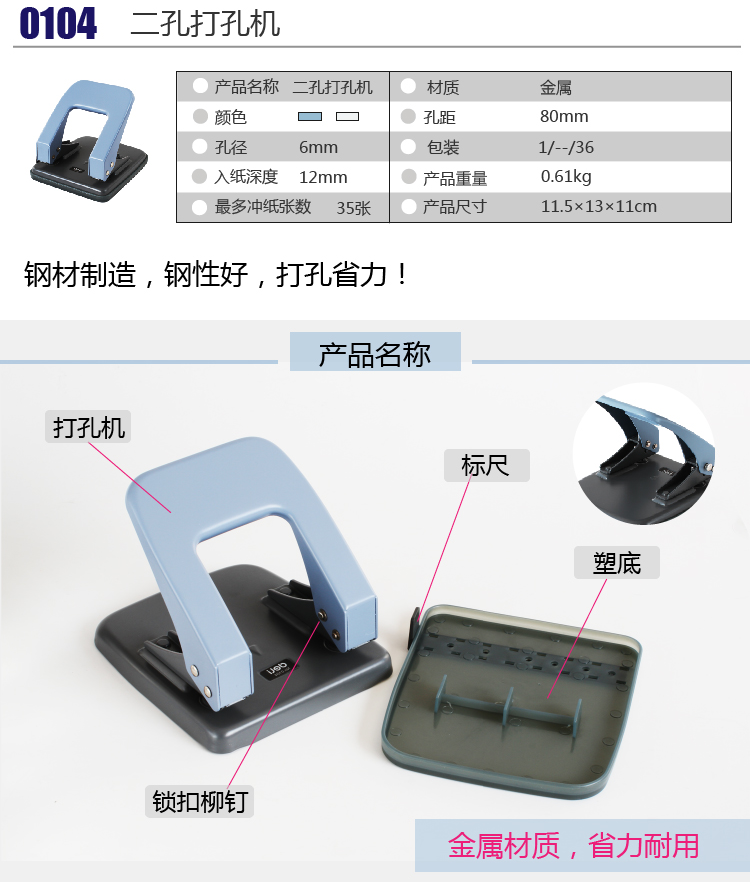 得力(deli)打孔器 打孔机0102可打孔20页 颜色随机