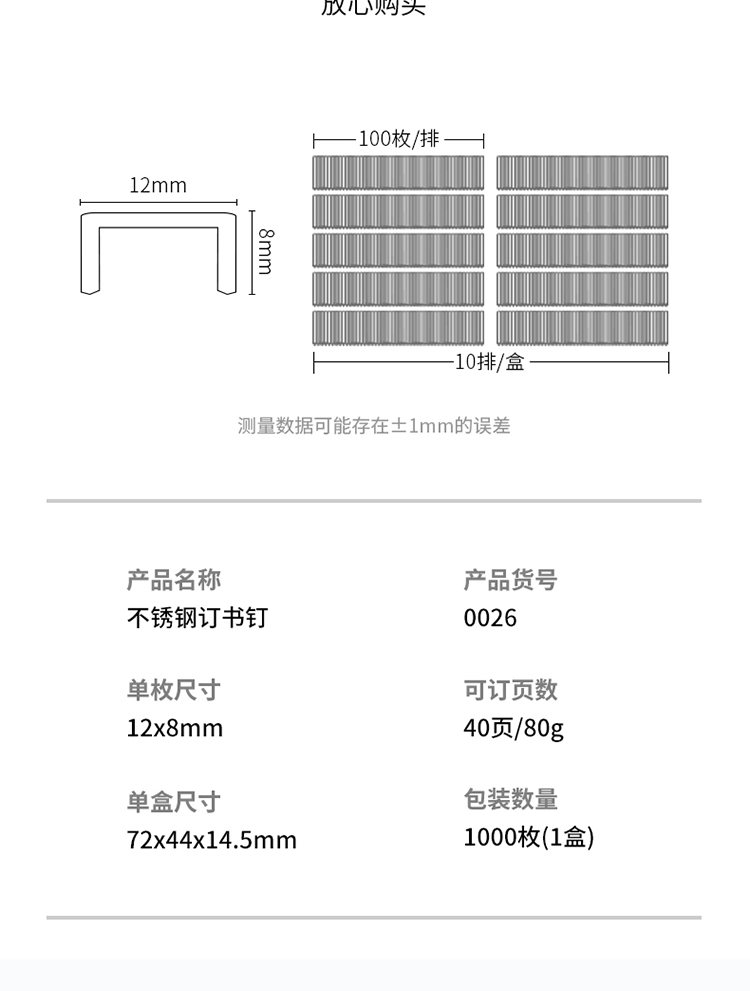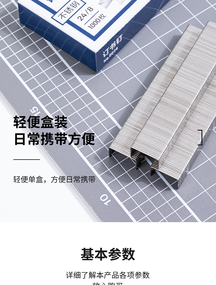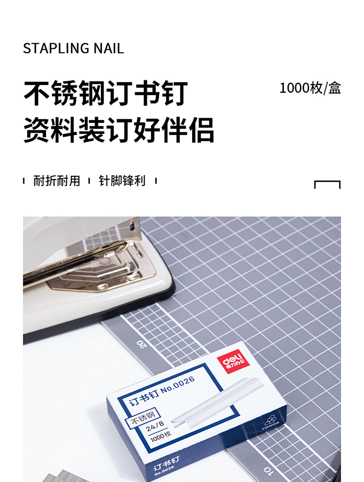 得力(deli)24/8加厚不锈钢订书钉/订书针 1000枚/盒 单盒装 办公用品 0026