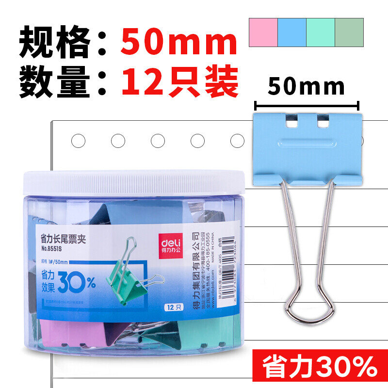得力(deli)彩色长尾夹8551S【50mm】12支装